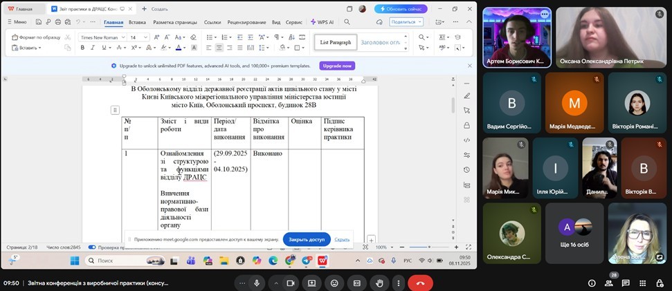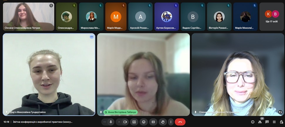 Завершення виробничої практики «Консульська робота» відбулося у форматі звітної конференції, на якій студенти доповіли про форми роботи та завдання, які вони виконували під час практики; підрозділи, в яких вони працювали; форми та специфіку роботи з документами.