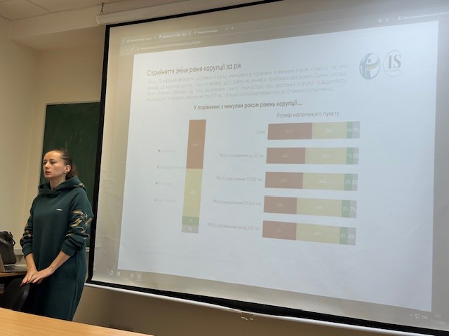 11 грудня 2025 р. на запрошення доцента кафедри міжнародних відносин Мирослави Лісовської заступниця виконавчого директора ГО «Transparency International Ukraine» Анастасія Мазурок провела інтерактивну зустріч зі здобувачами бакалаврських освітніх програм «Суспільні комунікації» та «Регіональні студії» 3-го року навчання.
