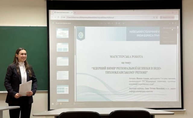 Цьогорічні роботи здобувачів ОП «Регіональні студії» виявилися сфокусованими на Азійсько-Тихоокеанському регіоні. Так студенти, завдяки можливостям побудови індивідуальної освітньої траєкторії, запропонували власні теми дослідження та зосередилися на вивченні культурної дипломатії Республіки Корея в першій чверті ХХІ ст. (Анна Бойченко), основних напрямках зовнішньої політики Японії в період кризи глобальної безпеки першої чверті ХХІ ст. (Богдан Рекуненко), ядерному вимірі регіональної безпеки в Індо-Тихоокеанському регіоні (Альона Фалько) та протистоянні США та КНР у сучасних міжнародних відносинах (Єлизавета Сіріна). Крім того, випускники ОП «Регіональні студії» захищали кваліфікаційні роботи, пов’язані з питаннями впливу президентської кампанії та результатів виборів 2024 року у США на українсько-американські відносини (Єгор Гурин) та проблемою розширення НАТО у першій чверті ХХІ ст. (Володимир Приходько). Екзаменаційна комісія відзначила як найкращу – роботу Єлизавети Сіріної на тему «Протистояння США та КНР у сучасних міжнародних відносинах: сфери та підходи» (науковий керівник – професор кафедри міжнародних відносин, д.і.н., ст.наук. співробітник О.Г. Цвєтков).