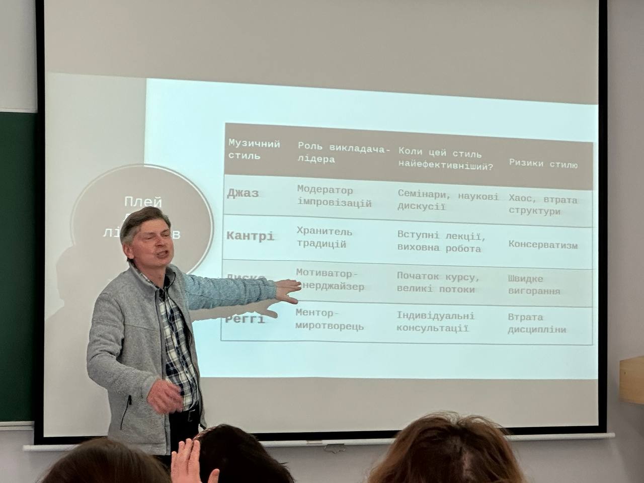 Тренером заходу виступив Костянтин Линьов, завідувач кафедри освітнього лідерства Інституту післядипломної освіти. Під час зустрічі учасники шукали відповіді на такі питання: Як проявити себе у лідерстві? Як лідеру та послідовникам розвивати свої якості, навички та поведінку? Як створювати команди та чи потрібно це в лідерстві? Як розвивати лідерство в академічному середовищі?