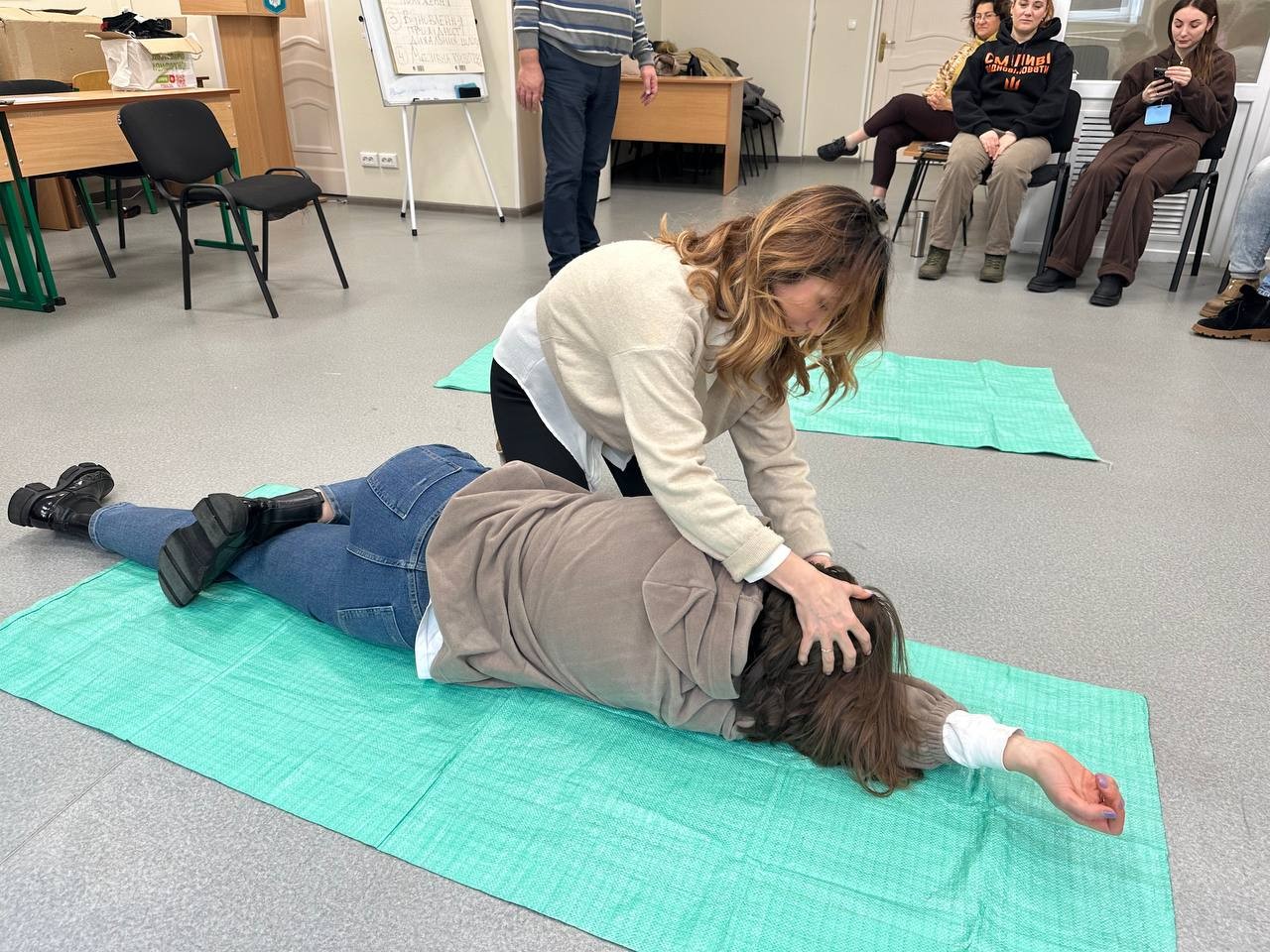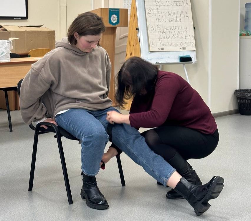 Тренер Валентин Михайлович Савченко – завідувач кафедри фізичної терапії та ерготерапії, доктор медичних наук, професор – запропонував присутнім не лише базову інформацію про домедичну допомогу, а й ознайомив учасників тренінгу з алгоритмами надання тактичної домедичної допомоги.