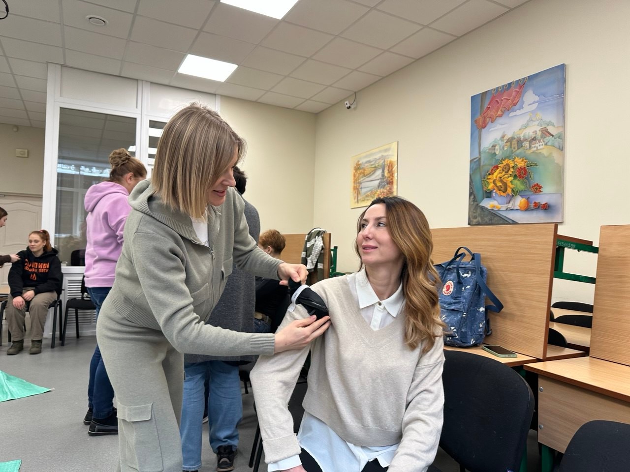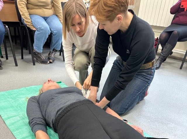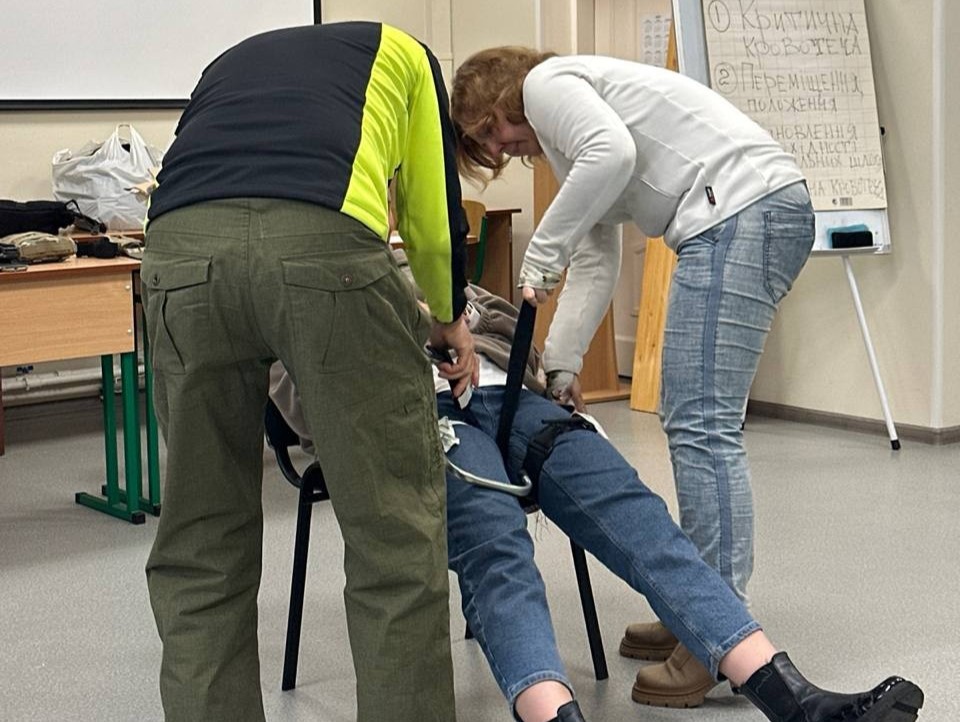 Найбільш важливою була практична частина, під час якої викладачі різних кафедр та співробітники загальноуніверситетських підрозділів відпрацювали навички зупинки масивної небезпечної для життя кровотечі, переміщення поранених чи травмованих, відновлення прохідності дихальних шляхів та здійснення серцево-легеневої реанімації. Тож, крім удосконалення професійних компетентностей відповідно до Профілю викладача Університету Грінченка, колеги отримали практичний досвід, вкрай необхідний в умовах війни.