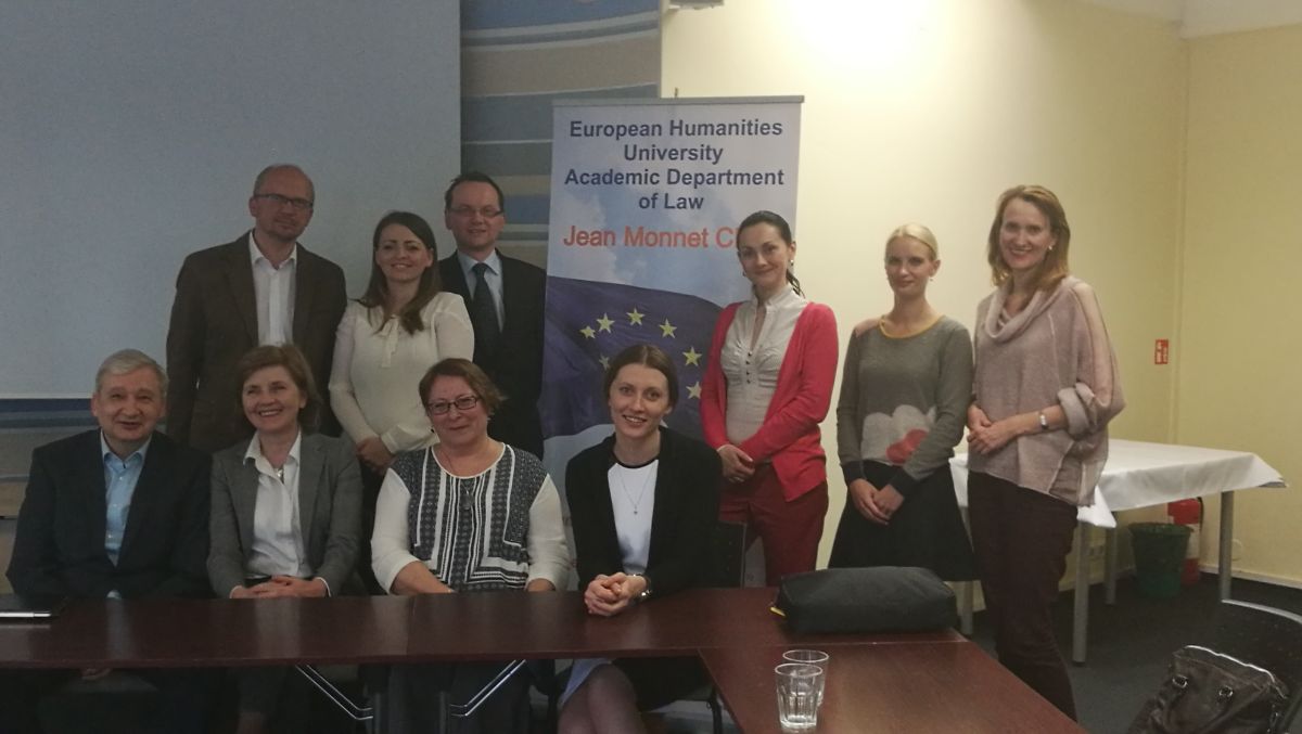 4-6 квітня 2017 р., на базі Європейського гуманітарного університету в м. Вільнюс (Литва) в рамках програми Жана Моне, за підтримки Програми Європейського Союзу Ерасмус +, спільно з Інститутом Йоганна Алтусіуса, відбувся семінар на тему: «Викладання Європейського транснаціонального конституціоналізму всередині і за межами ЄС». В рамках семінару обговорювалися проблеми визначення «Конституційного права ЄС», принципи Конституційного права ЄС, особливості методики викладання Конституційного права Європейського Союзу. Було констатовано, що викладання Конституційного права ЄС вимагає інших підходів, ніж традиційні, які застосовуються в роботі з національним конституційним правом. Професор кафедри міжнародних відносин та міжнародного права, Л.О. Тимченко, запропонувала учасникам семінару власне бачення щодо цінностей, завдань та меж у викладанні Конституційного права ЄС.