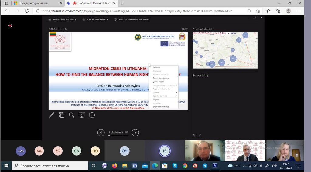 25-26 листопада 2021 року доцент кафедри міжнародних відносин та міжнародного права Ірина Василівна Братко прийняла участь в Міжнародній науковій практичній конференції «Угода про асоціацію з ЄС як інструмент забезпечення стійкості економіки України», що відбулася за підтримки програми Еразмус + Європейського союзу у межах проекту Центру досконалості Жана Моне «Поглибленний розвиток європейських студій в Україні: міждисциплінарний підхід».