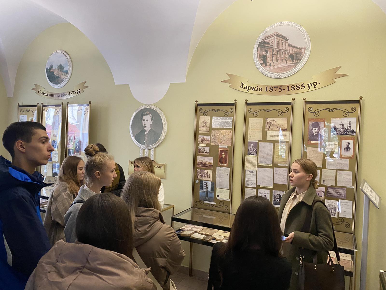 28 вересня 2022 року студенти-першокурсники спеціальності «Міжнародне право» відвідали музей Бориса Грінченка, розташований у будівлі ректорату КУБГ. Для проведення екскурсії цей день обрали не випадково – адже цього року саме 28 вересня грінченківці відзначають День університету.