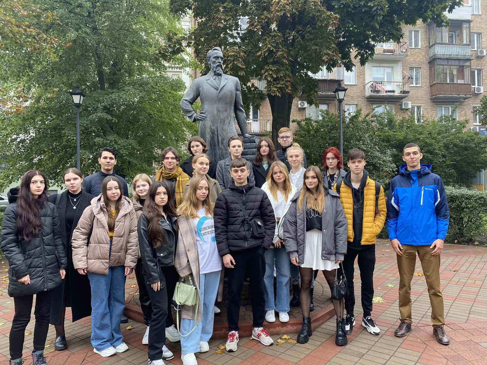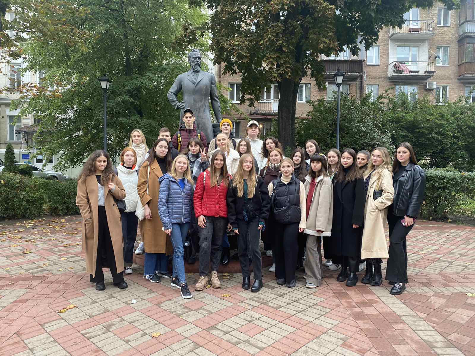 Завершилася екскурсія вшануванням пам’яті Бориса Грінченка. Студенти разом із викладачем навчальної дисципліни «Я – студент» Оленою Пістракевич, куратором академічної групи Інною Ворошиловою та керівництвом Університету взяли участь у церемонії покладання квітів до пам’ятника видатному українському мовознавцю.