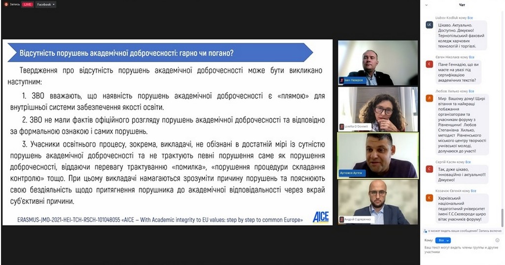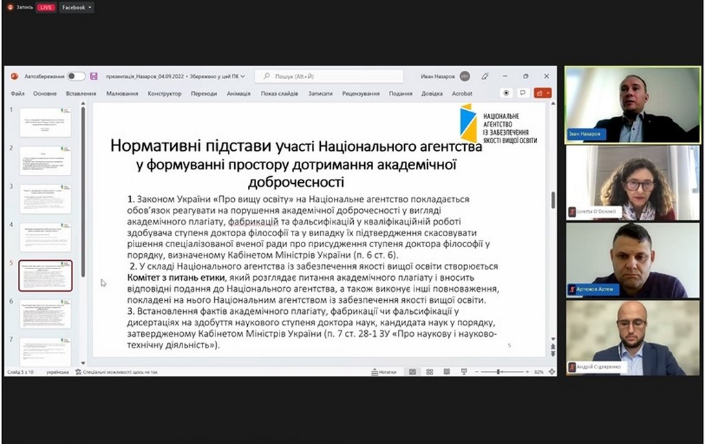 4 жовтня 2022 року кандидат юридичних наук, старший науковий співробітник, доцент кафедри Інна Ворошилова взяла участь у Форумі академічної доброчесності, організованому в онлайн-форматі Національним агентством із забезпечення якості вищої освіти і Unicheck та присвяченому нагальним питанням забезпечення академічної доброчесності в Україні та світі.