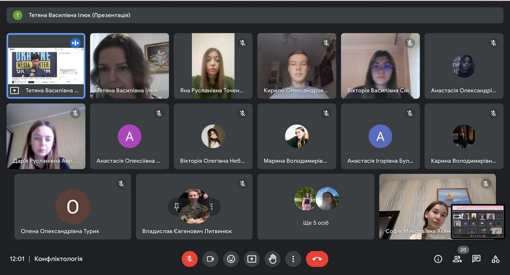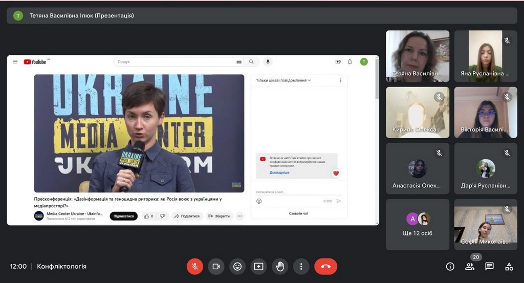 З величезним інтересом студенти дізналися про важливість термінологічної коректності, – не пропаганда, а «агресивна пропаганда» та «геноцидна риторика», – що дає можливість оцінювати їх дії з точки зору кримінальної відповідальності. Про сучасні тренди висвітлення війни російськими медіа: про сакралізацію війни, про порушення журналістських стандартів та пропаганду війни, про домінування тематики України в російському медіапросторі, коли Україні присвячено понад 40% усього національного медіапростору рф. Про наративи, які сьогодні домінують у медіапросторі.