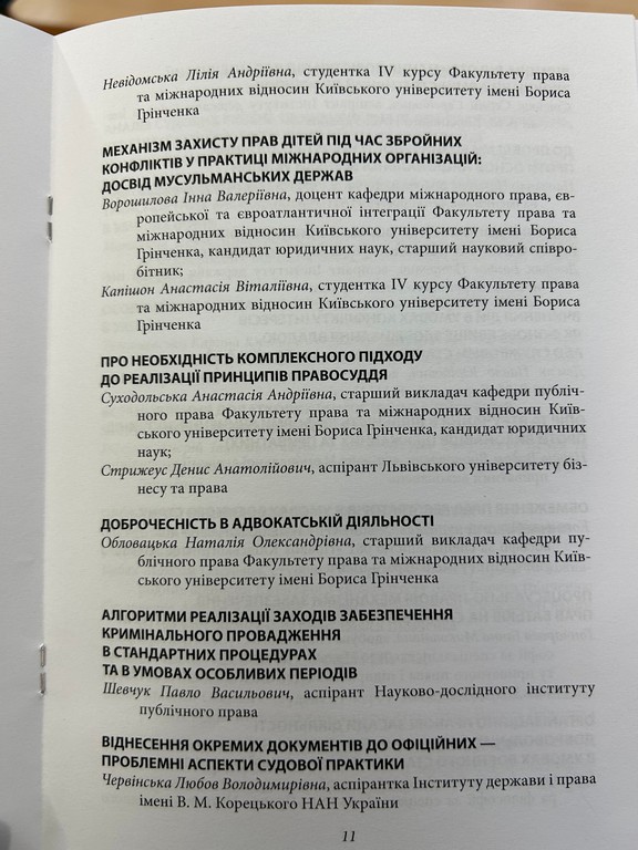 7 грудня 2023 року у Київському університеті імені Бориса Грінченка відбувся ІХ Круглий стіл до Тижня права України "Права людини в умовах воєнного стану в Україні". Організаторами виступили, зокрема Факультет права та міжнародних відносин та Юридична клініка «Астрея».