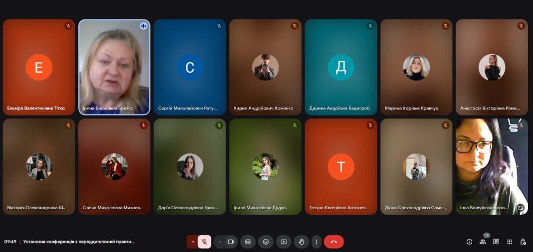 26 квітня 2025 року відбулася установча конференція з переддипломної практики студентів 4 курсу спеціальності «Міжнародне право», яка триватиме з 28 квітня до 28 травня 2025 року. Організатором практики є доцент кафедри міжнародного права, європейської та євроатлантичної інтеграції Інна Ворошилова. Базами практики для студентів цього року стали Міністерство закордонних справ України, Державна служба України з безпеки на транспорті, юридичні компанії та асоціації юристів.