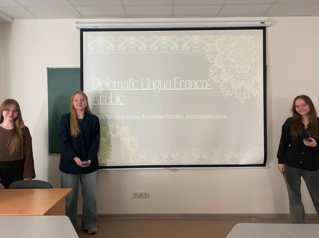 Tempora mutantur et nos mutamur ad ilis. Часи змінюються і ми змінюємось разом з ними. Англійська мова не є єдиною мовою дипломатичної комунікації. Тільки зараз наша цивілізація використовує шість дипломатичних лінгва франка. Але так було не завжди. Студентам було запропоновано створити проекти про інші мови, які в свій час служили мовами політичних контактів та дипломатичної комунікації. На засіданні кружку студенти презентували групові проєкти про лінгва франка стародавнього та сучасного світу: давньогрецьку, давньоєгипетську, арабську та китайську мови, латину, та французьку. Студенти дослідили хто, коли та де використовував ці мови, яка у них була структура та призначення в дипломатичної комунікації. Виступи та матеріал презентувався виключно англійською мовою, що дозволило практикувати комунікативну складову та обмінятись цінним фаховим та освітнім матеріалом. Продовжуємо нашу роботу. Per aspera ad astra!