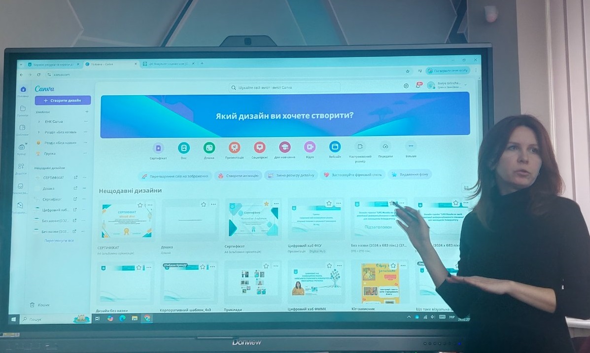 - 02.2025 Тренінг "Canva як засіб візуалізації навчальних матеріалів" (модератор: Ірина Коваленко; викладачі: Книшевицька Лілія Володимирівна, Гурина Наталія Вікторівна) сприяв ефективній подачі інформації.