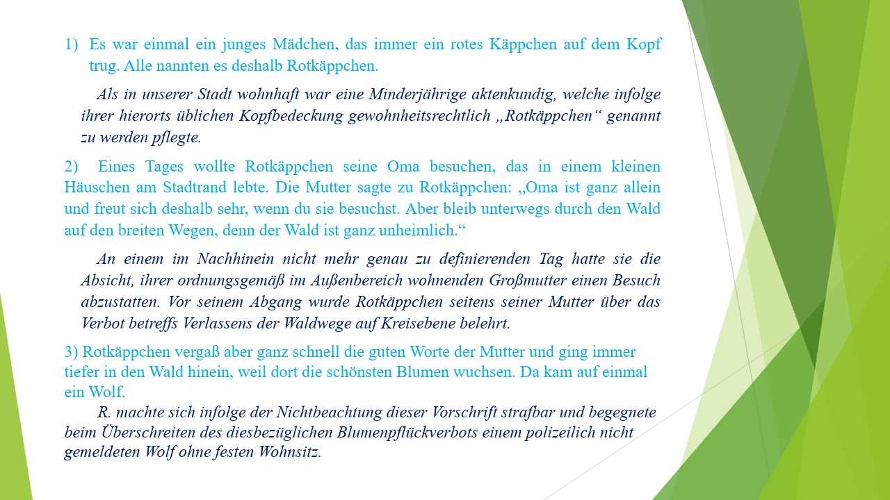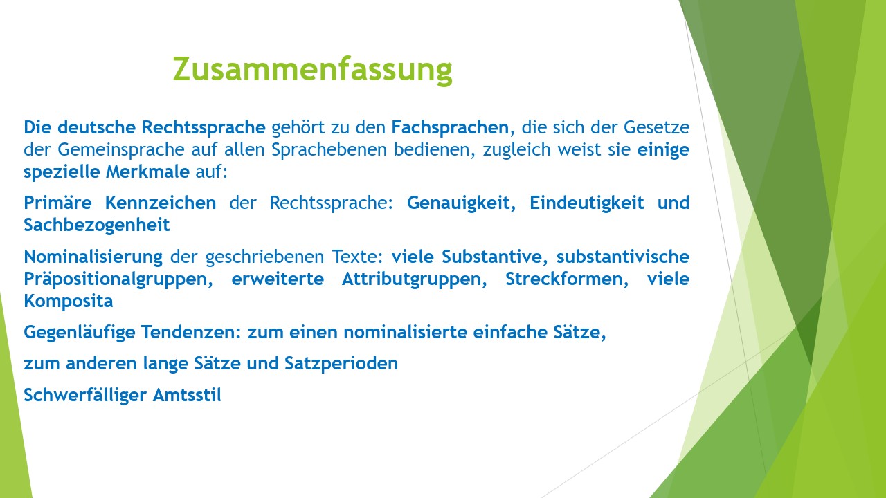 Щоб оживити складну матерію, якою є німецька юридична мова, і показати її особливості, В.І. Крепель почала свою лекцію з демонстрації декількох текстів казки про «Червону шапочку», написану канцелярською мовою, мовою адвокатів і юридичною мовою, та вказала на такі особливості німецької юридичної, як використання номінального стилю з багатьма складними іменниками, іменниковими групами та поширеними атрибутивними означеннями. Окремо лекторка зупинилась на складному синтаксисі текстів законів, для цього вона застосувала навчально-методичні та фахові матеріали, отримані під час проходження двотижневого семінару «Juristisches Deutsch/Юридична німецька мова» у Бонні (Німеччина). У кінці лекції відбулося жваве обговорення результатів дослідження, зокрема своїм досвідом викладання курсу за вибором «Особливості німецької юридичної мови» поділилась асистент кафедри німецької філології Волинського національного університету імені Лесі Українки О.В. Бугайчук. Лекція В.І. Крепель є важливою лекцією в рамках цього семінару, присвяченою фаховим мовам, вона розширює науковий кругозір учасників семінару і сприяє ознайомленню з важливими ознаками німецької юридичної мови, а фактичний матеріал лекції може бути застосований під час викладання студентам німецької мови за професійним спрямуванням.