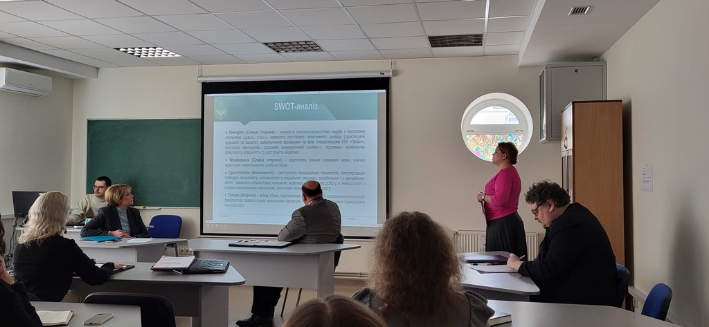 У презентації пропозицій кафедри та обговоренні Стратегії взяли участь завідувачка кафедри публічного права Г.П. Власова, науково-педагогічні працівники кафедри Н.О. Обловацька, А.П. Чернега, представники студентського самоврядування К.Дудко та А.Левицька, М.Копьонкін, декан ФПМВ М.А.Кулініч та його заступники, А.Ю.Нашинець-Наумова, І.Ю.Слюсаренко, Н.В.Баранова.