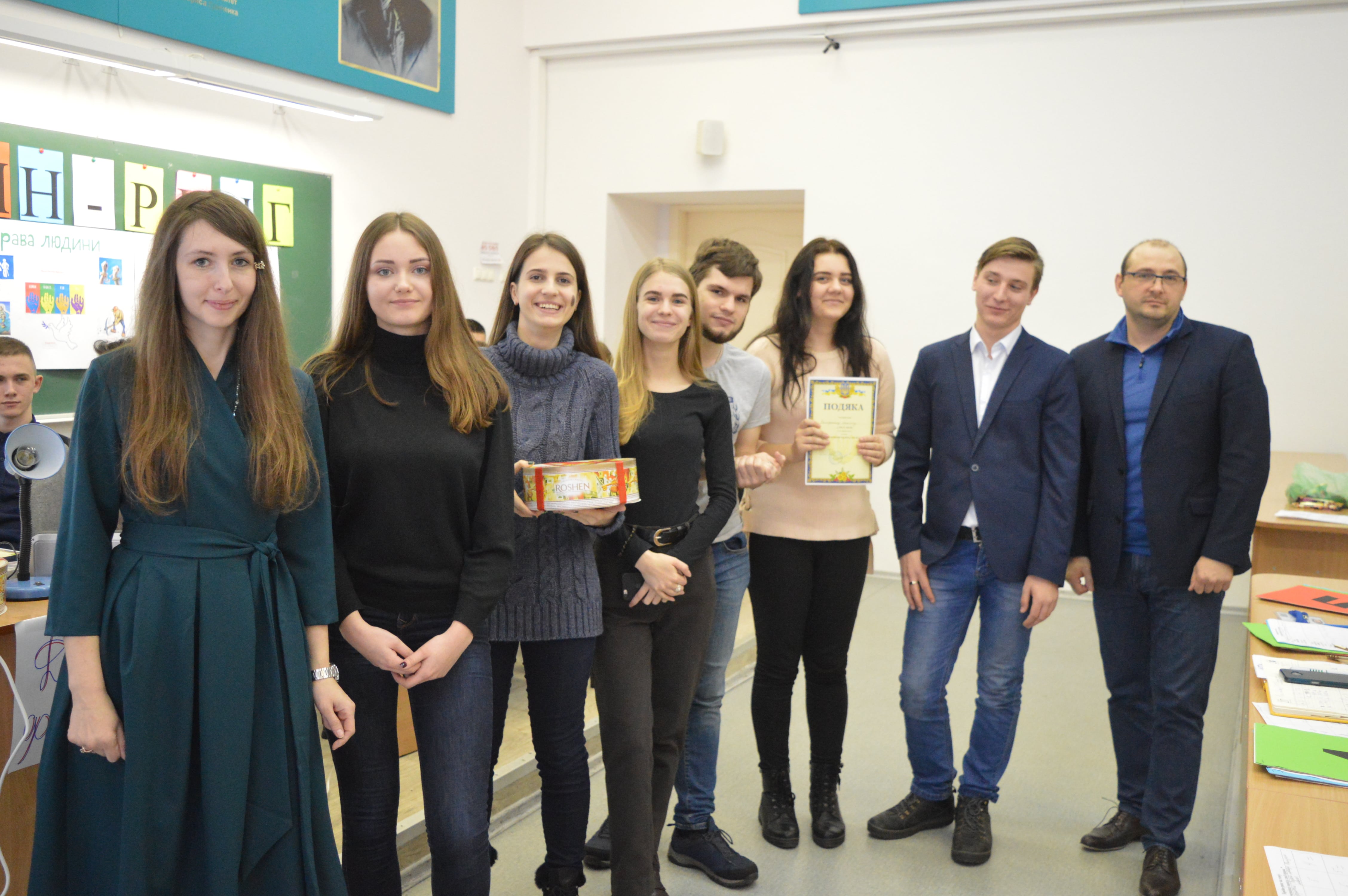 Переможці та учасники пізнавально-інтелектуальної гри були нагородженні солодкими подарунками і Подяками від Факультету права та міжнародних відносин.