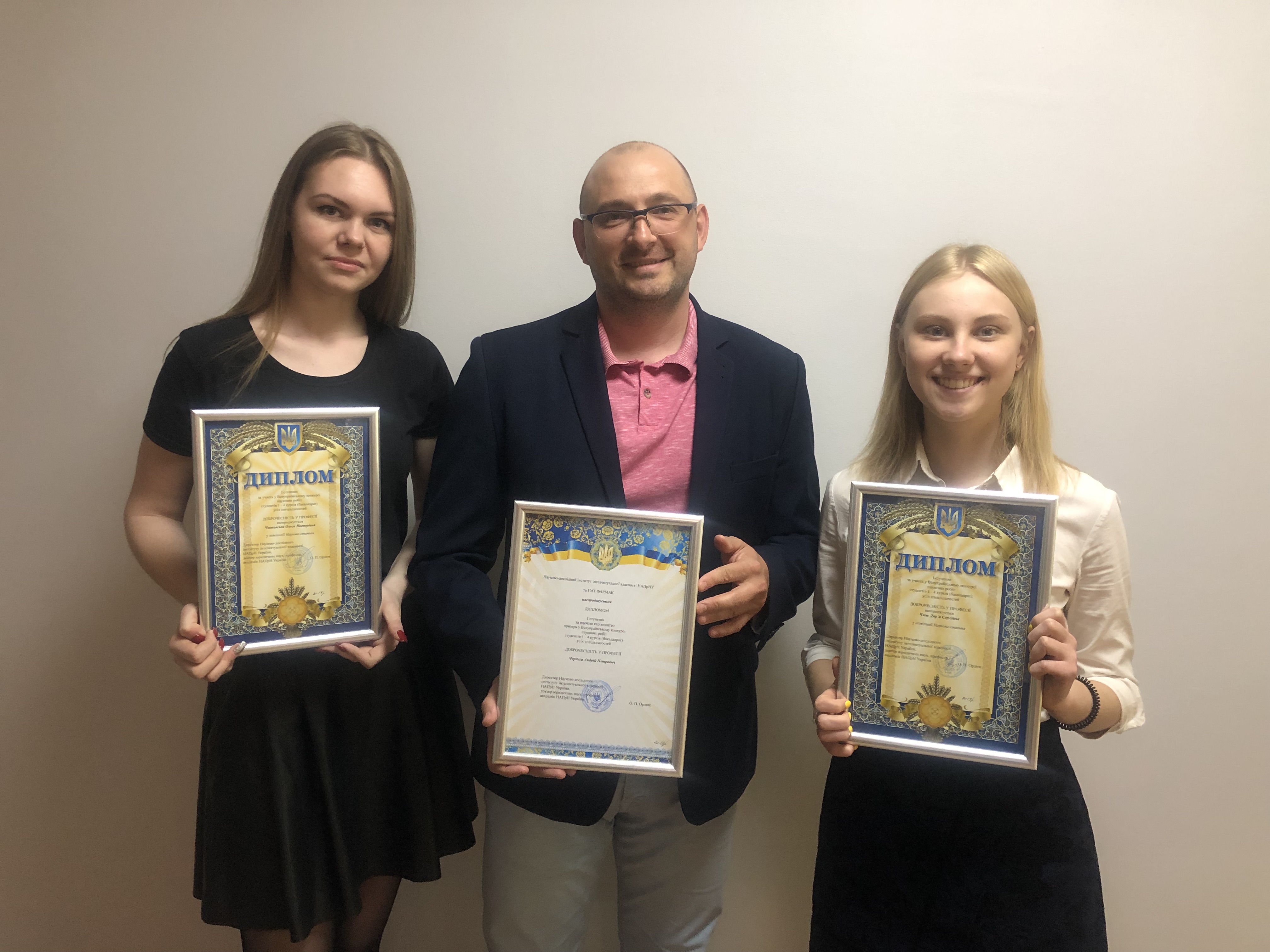 Наукового керівника, завідувача ЮК «Астрея», доцента кафедри публічного і приватного права Факультету права та міжнародних відносин Київського університету імені Бориса Грінченка – Андрія Чернегу нагороджено дипломом І ступеня за наукове керівництво роботами призерів конкурсу.