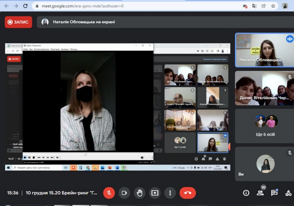В рамках Грінченківської декади та Тижня прав людини 10 грудня 2021 р. кафедра публічного та приватного права провела онлайн змагання, з використанням сервісу Google Meet, у грі Брейн-ринг на тему: «Грінченківці знають свої права” між студентами спеціальності «Право» Факультету права та міжнародних відносин і студентами спеціальності «Соціальна педагогіка» Фахового коледжу «Універсум». Захід був спрямований перевірку знань студентів основних соціальних прав людини та студентів.