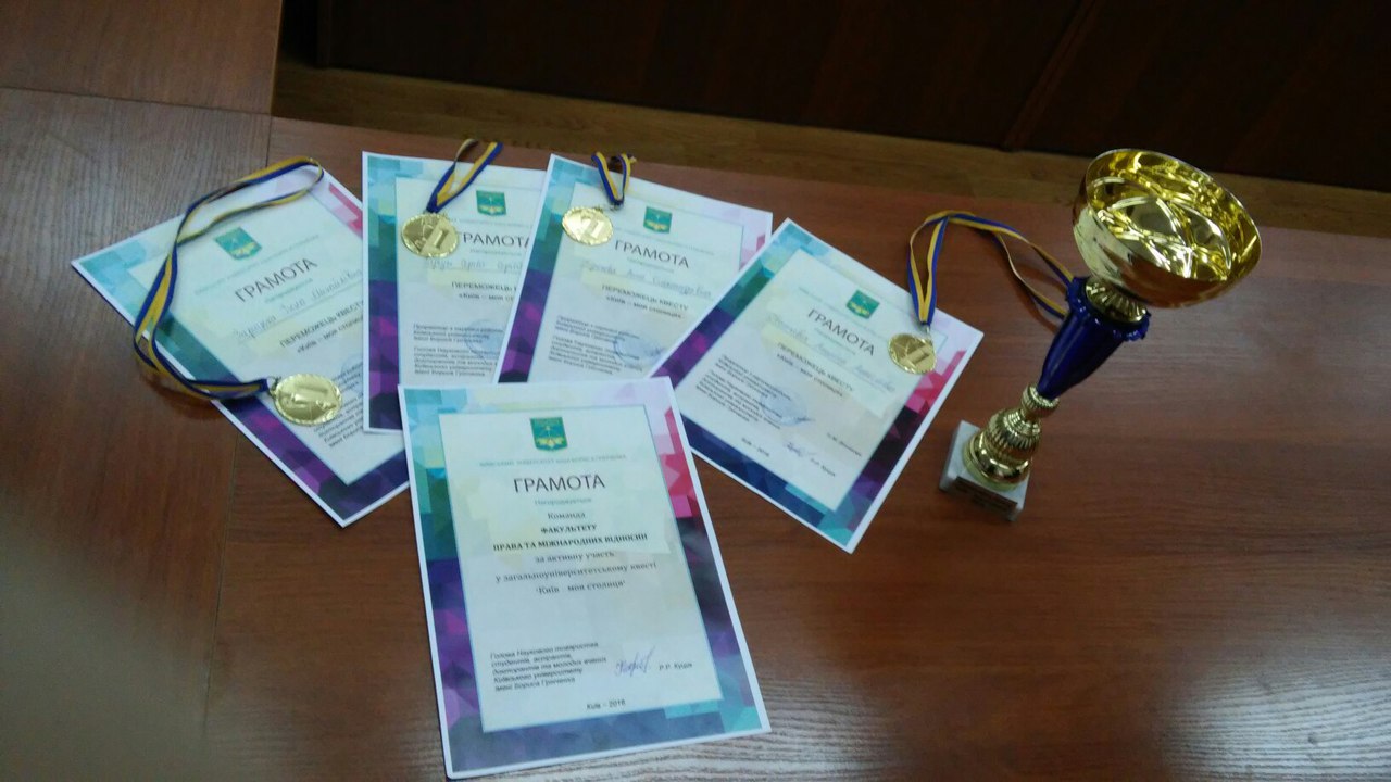 За результатами всіх етапів, найкраще проявила себе команда Факультету права та міжнародних відносин, яка здобула перше місце та головний приз – кубок переможця квесту “Київ – моя столиця” 2016 року. Друге місце виборола команда Інституту мистецтв, а третю сходинку посіла команда Факультету здоров’я, фізичного виховання і спорту. Всі учасники квесту були нагороджені грамотами.