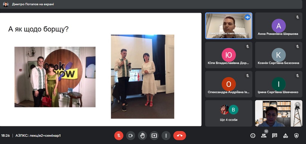 Дмитра Потапова запросила доцент кафедри міжнародних відносин та міжнародного права, кандидат історичних наук, доцент Слюсаренко Ірина Юріївна, з метою посилення практико-орієнтованої спрямованості освітнього компоненту «Аналіз зовнішньої політики країн світу», в межах функціонування Інформаційно-аналітичного центру Факультету права та міжнародних відносин.