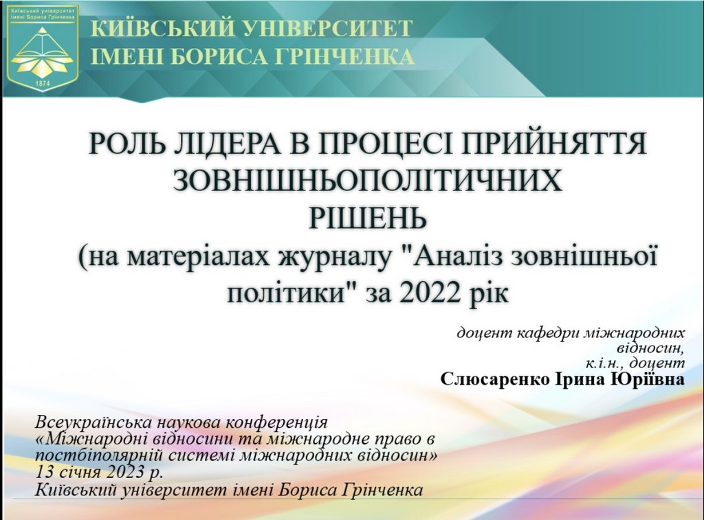 У період з 13 по 23 січня 2023 р. тривала робота Всеукраїнської наукової онлайн-конференції "МІЖНАРОДНІ ВІДНОСИНИ ТА МІЖНАРОДНЕ ПРАВО В ПОСТБІПОЛЯРНІЙ СИСТЕМІ МІЖНАРОДНИХ ВІДНОСИН".