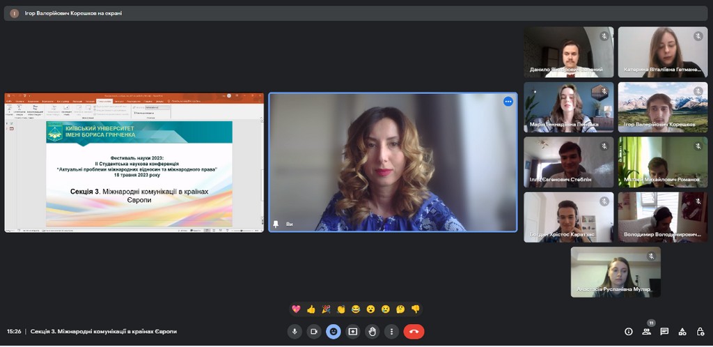 18 травня 2023 р. в рамках Фестивалю науки - 2023 в Київському університеті імені Бориса Грінченка на Факультеті права та міжнародних відносин відбулася ІІ Студентська наукова конференція «Актуальні проблеми міжнародних відносин та міжнародного права». У зв’язку із постійними загрозами ракетних обстрілів з боку держави-агресора конференція проходила в онлайн форматі.