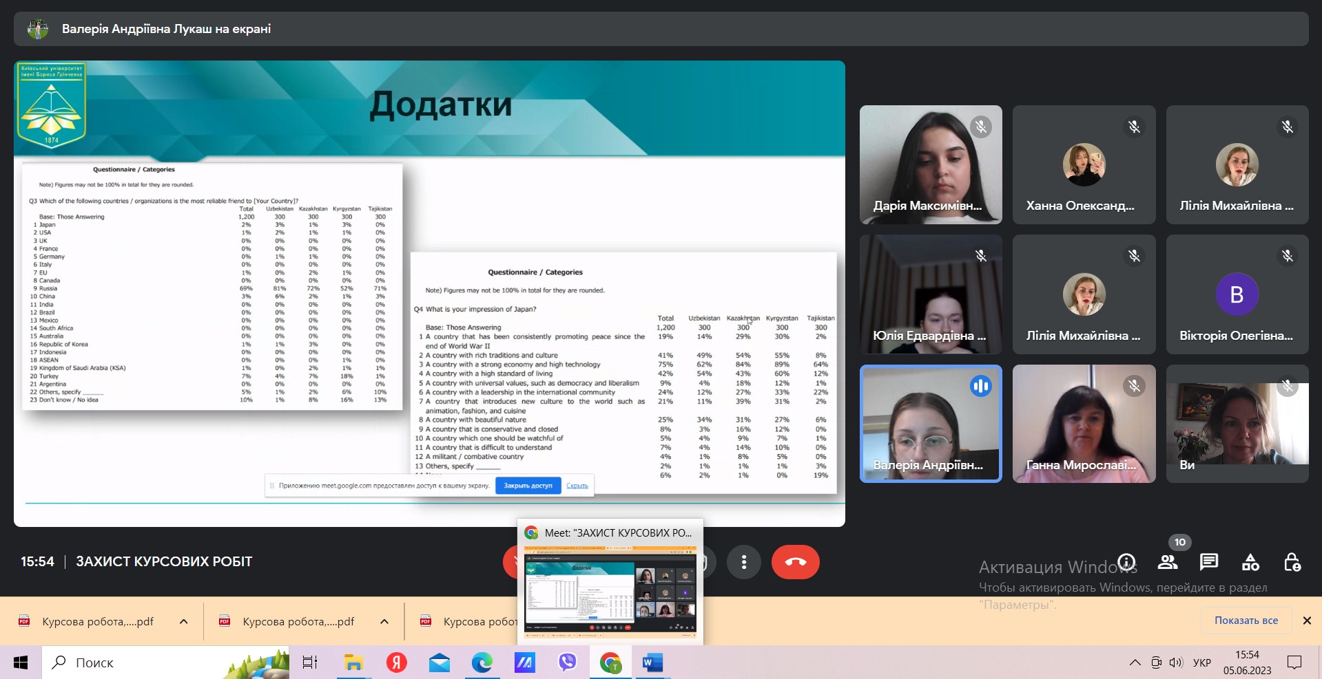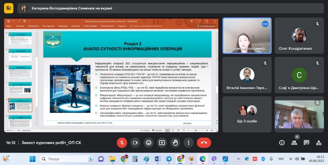 Вітаємо з успішним захистом курсових робіт студентів ІІ курсу освітньої програми «Суспільні комунікації»! Пишаємося тим, що наші студенти, завдяки серйозному підходу до написання наукових робіт, наполегливій та злагодженій роботі з науковими керівниками, зуміли гідно презентувати свої дослідження із найрізномінатніших аспектів міжнародних відносин та суспільних комунікацій. Захист успішно пройшов на кафедрі міжнародних відносин 05 червня 2023 року. Вітаємо викладачів та студентів з успішним подоланням відповідального та складного завдання у такий непростий для України час! Щиро бажаємо нашим студентам зберегти запал до пізнання й наукового аналізу нового та недослідженого!