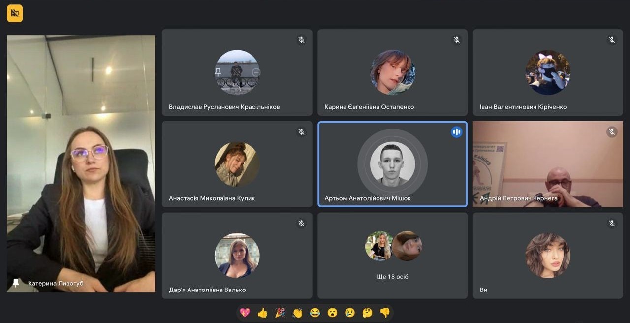 24 квітня 2023 року відбулася зустріч студентів правників з Катериною ЛИЗОГУБ – магістром права (випуск – 2018 року навчання) Факультету права та міжнародних відносин Університету Грінченка, помічником-консультантом депутата Київської міської ради ІХ скликання, заступника голови Постійної комісії Київської міської ради з питань бюджету та соціально-економічного розвитку Тараса КОЗАКА. Це вже друга зустріч з Катериною, перша відбулася 8 грудня 2021 року з студентами першокурсниками та юркліністами в рамках діяльності Центру юридичної деонтології та ЮК «Астрея». Відповідна співпраця з Київською міською радою в особі Катерини ЛИЗОГУБ та Тараса КОЗАКА спрямована на реалізацію мети та завдань освітнього процесу Факультету права та міжнародних відносин – а саме впровадження практико-орієнтовного навчання на всіх рівнях вищої освіти в Університеті зі спеціальності «Право».