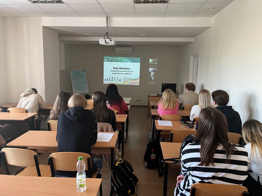 5 жовтня 2023 р. кандидат історичних наук, доцент, куратор групи СКб-1-22-4.0д Ганна Мельник разом зі студентами 2 курсу, які навчаються на освітній програмі “Суспільні комунікації” взяли участь у онлайн-дискусії "Homo ciberneticus: викрадення ідеї як викрадення людини?". Під час заходу обговорили питання дотримання академічної доброчесності як здобувачами вищої освіти, так і науково-педагогічними працівниками Університету Грінченка.