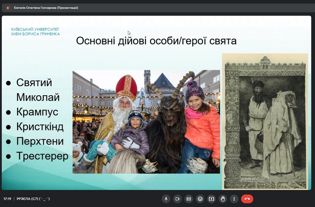 На жаль, дегустаційна складова не могла бути реалізована повною мірою: через підвищену активність країни-агресорки та загрозу ракетних обстрілів заняття були переведені у дистанційний формат. Втім, здобувачі третього курсу в онлайн форматі поділилися результатами своїх досліджень та кулінарних випробувань. Через призму свят зимового циклу здобувачі виявили поєднання дохристиянських та християнських мотивів у різдвяно-новорічних святкуваннях, культурні запозичення у Європі та Америці, походження інгрідієнтів традиційних страв, основні сюжети зимових святкувань та головних героїв. Прикро, що не всі здобувачі могли взяти участь у дегустації страв, власноруч приготовлених одногрупниками, однак всі присутні мали шанс дізнатися про труднощі та ресурсозатратність традиційних зимових наїдків, які формують святковий стіл у народів Європи та Північної Америки. На думку здобувачів такий практичний вимір навчання варто удосконалювати та впроваджувати і надалі.