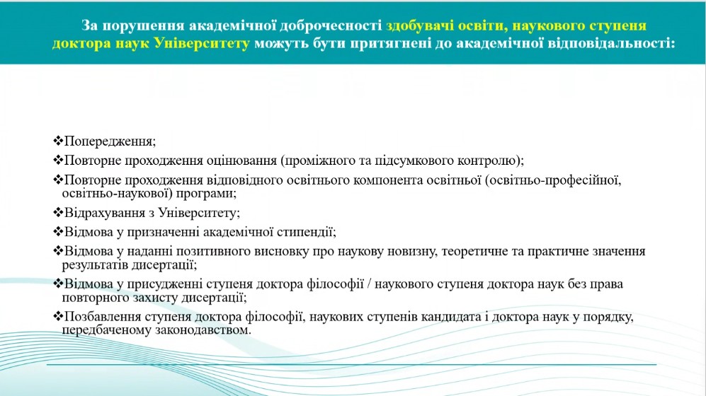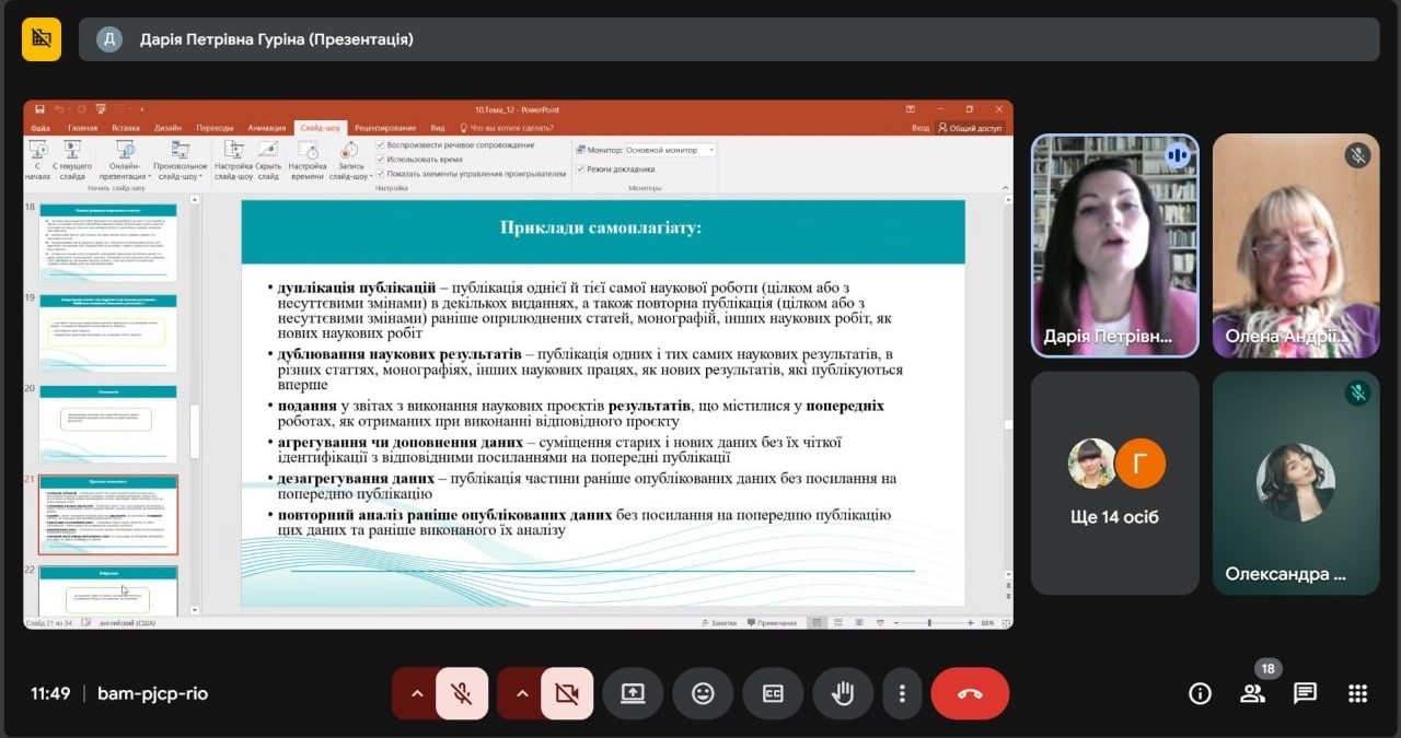 Учасники вебінару також мали можливість задати питання та отримати відповіді щодо конкретних ситуацій, пов'язаних з академічною відповідальністю за порушення академічної доброчесності.