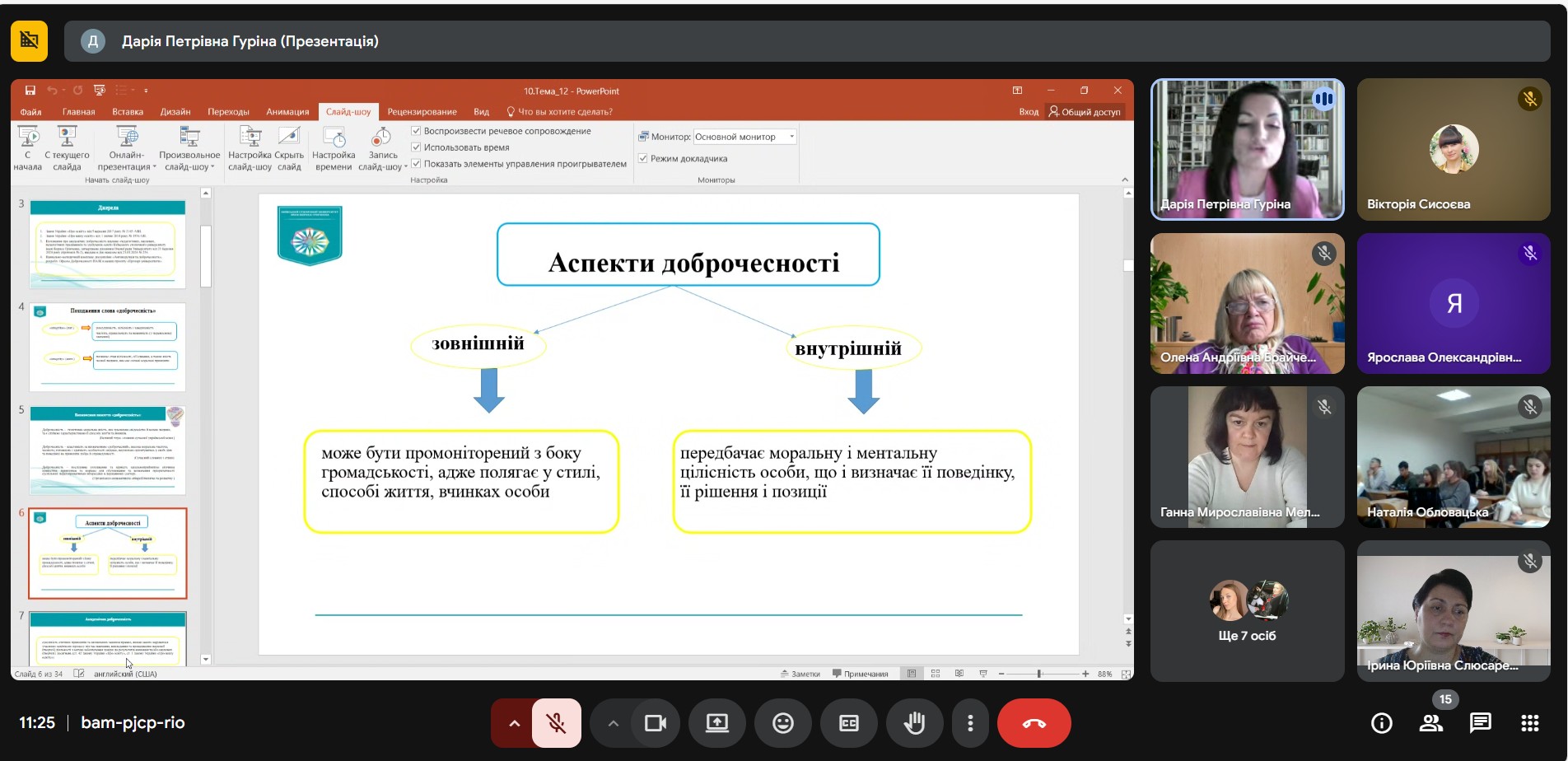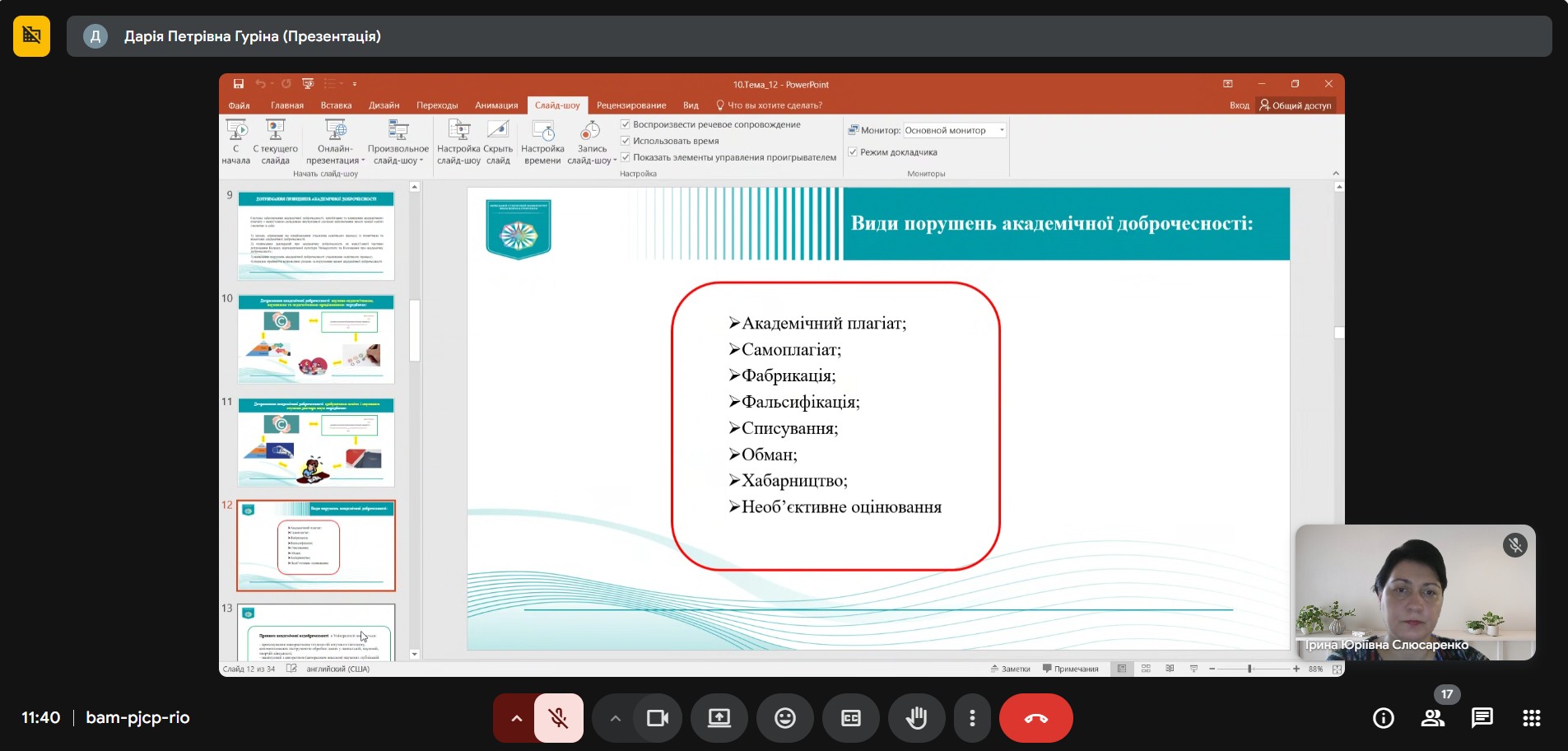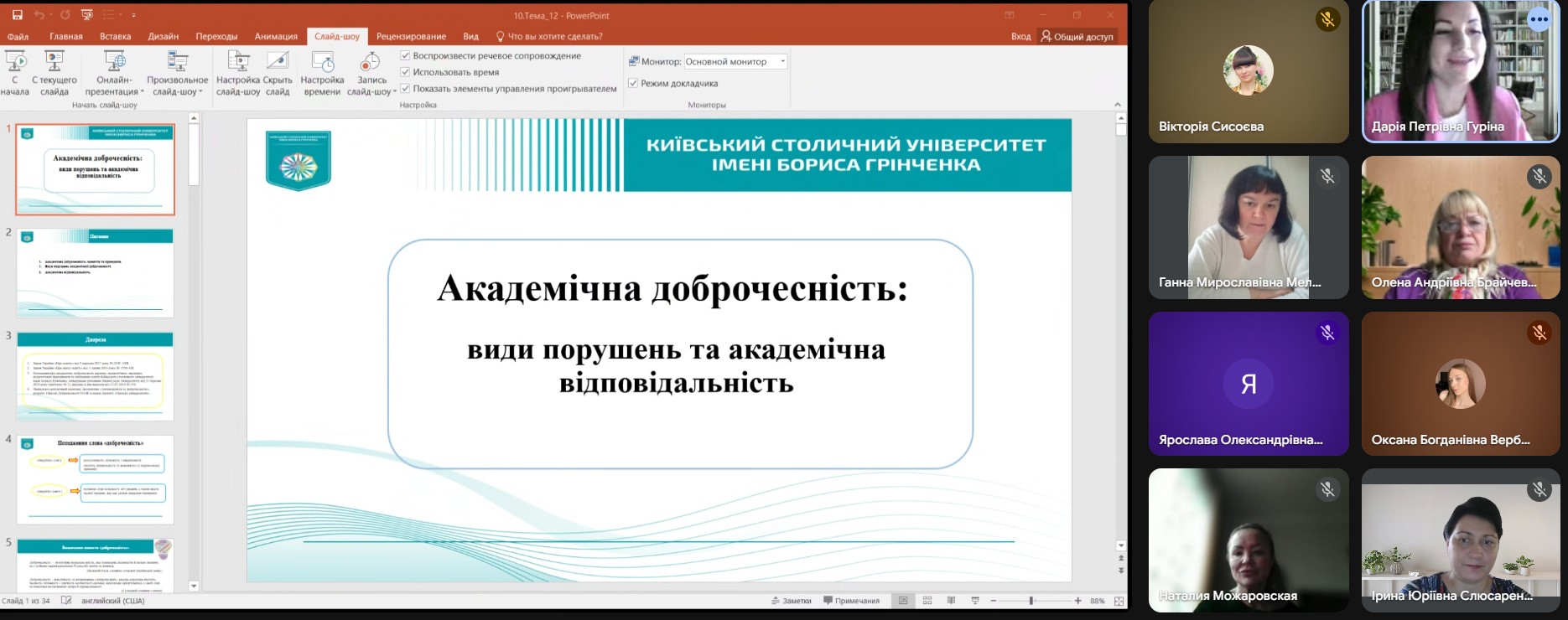 21 листопада 2025 року на Факультеті права та міжнародних відносин відбувся вебінар на тему «Академічна доброчесність: види порушень та академічна відповідальність», який провела Дарія ГУРІНА, кандидат юридичних наук, доцент кафедри публічного права Факультету права та міжнародних відносин. До заходу долучилися науково-педагогічні працівники кафедр міжнародних відносин, публічного права та іноземних мов, а також здобувачі освітніх програм «Право» першого (бакалаврського) рівня та «Міжнародні відносини та дипломатія», «Міжнародне право» другого (магістерського) рівня Факультету права та міжнародних відносин.