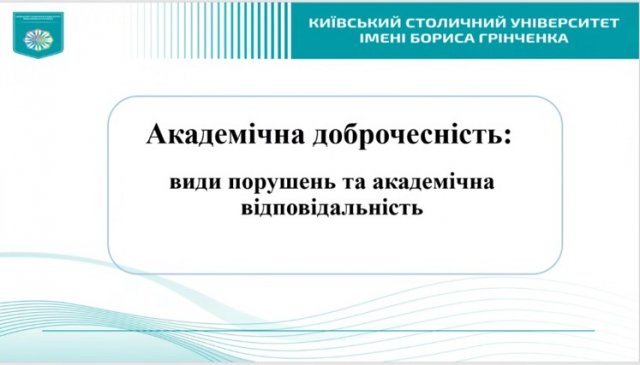 Учасники розглянули нормативно-правову базу, термінологію, ключові проблеми порушення академічної доброчесності: академічний плагіат, фальсифікація та фабрикація даних, списування та інші форми академічної недоброчесності. Лекторка детально пояснила відповідальність за такі дії для різних категорій учасників освітнього процесу. Особливу увагу було приділено важливості формування культури академічної доброчесності серед здобувачів та науково-педагогічних працівників. Не оминули під час заходу увагою й новий документ – «Політика використання штучного інтелекту в Київському столичному університеті імені Бориса Грінченка», який визначає засади, правила та принципи впровадження і застосування інструментів ШІ в Університеті.