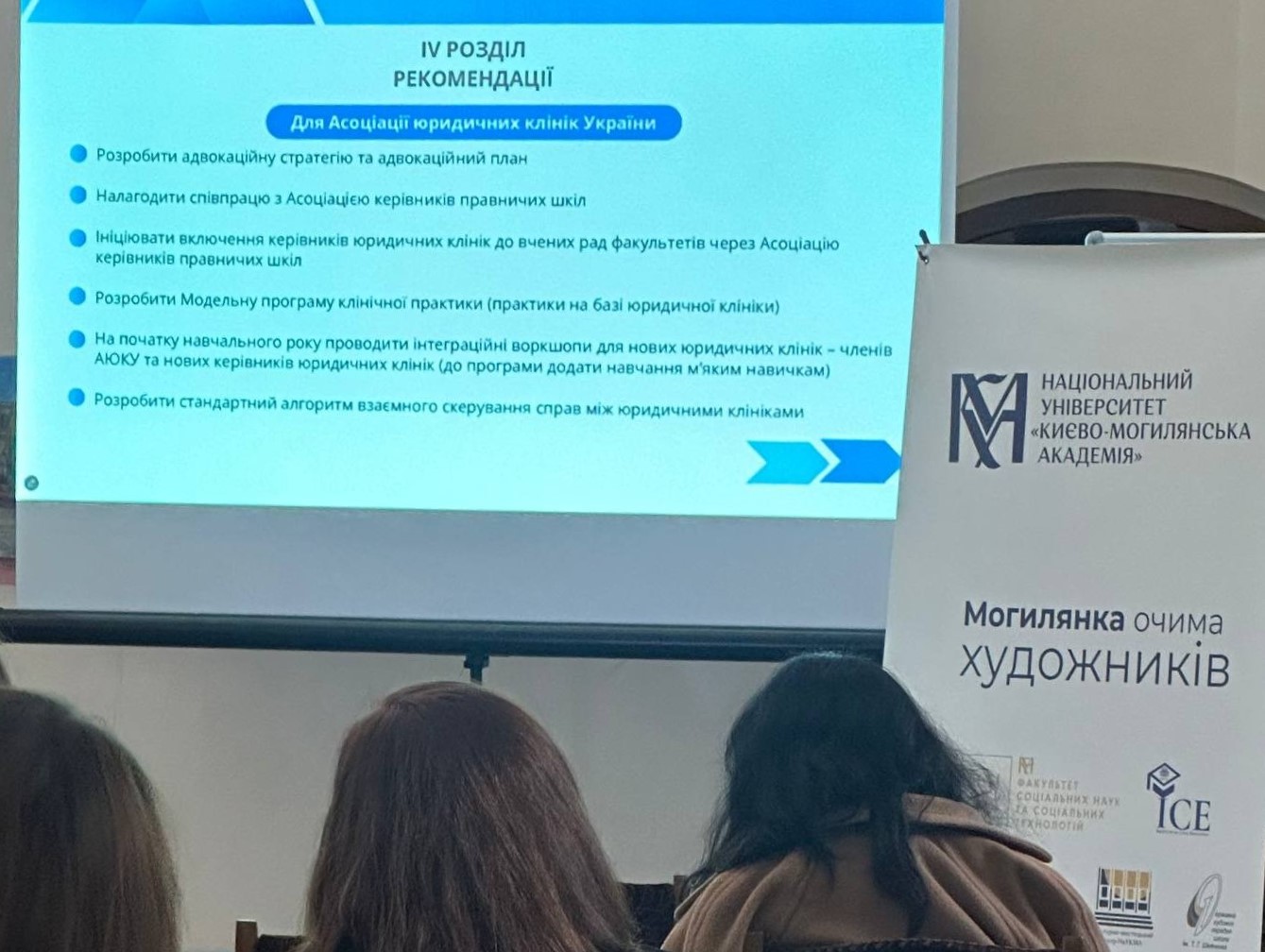 Форум відкрили Юлія ЛОМЖЕЦЬ – голова АЮК України, Володимир ВЕНГЕР – декан Факультету правничих наук Національного університету «Києво-Могилянська академія» та Ігор ОСИКА – заступник керівниці Офісу Інституту прав людини і гуманітарного права імені Рауля Валленберга в Україні. Голова АЮК України прозвітувала про діяльність асоціації за 2025 рік, усі учасники заходу мали можливість прийняти участь у групових дискусіях і неформальному спілкуванні. Окремим центральним елементом Форуму стала презентація аналітичного дослідження на тему: «Юридичні клініки правничих шкіл України: досвід, проблеми та міжнародні партнерства».