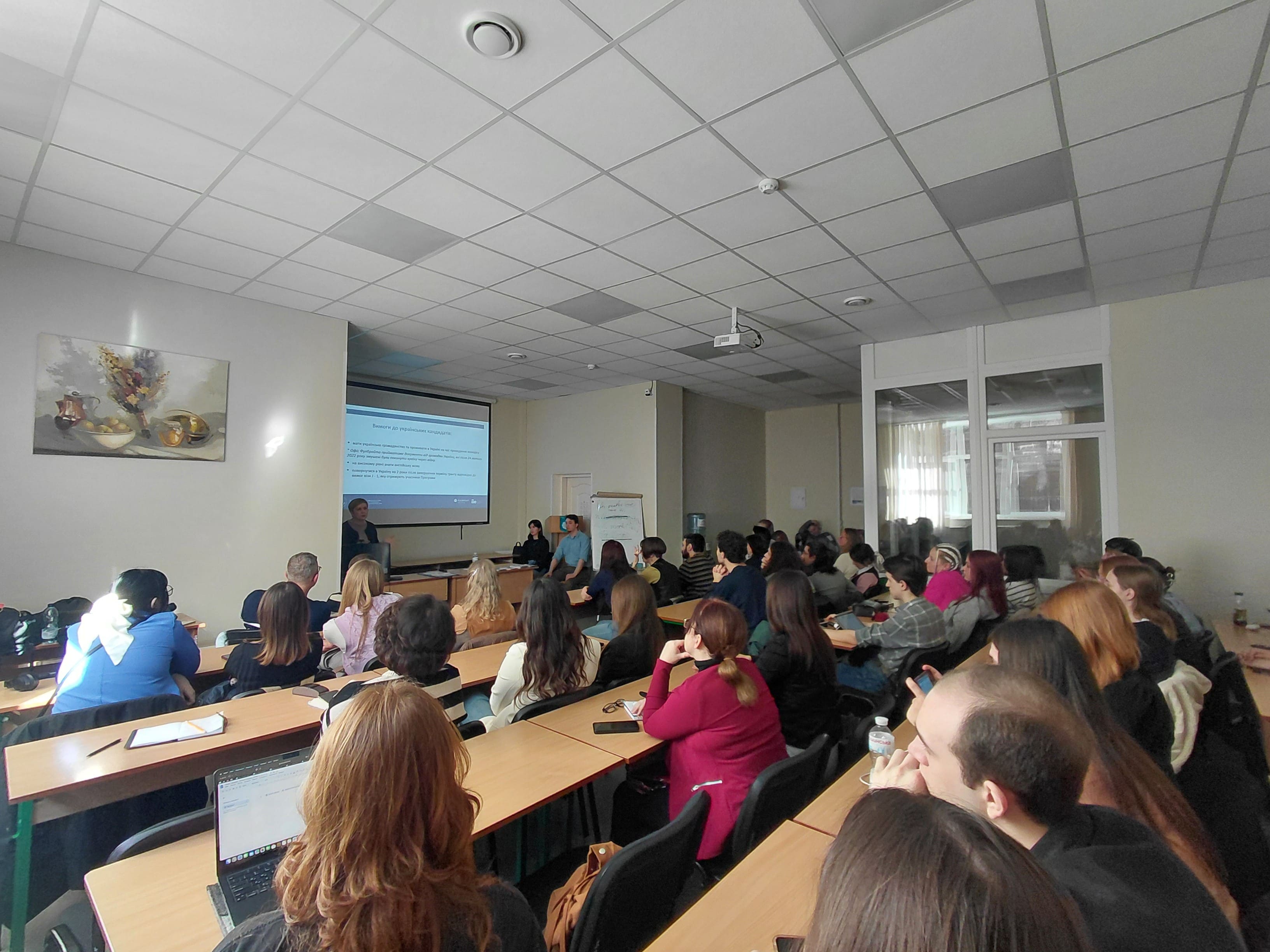 12 березня 2026 року викладачі та студенти Факультету права та міжнародних відносин відвідали інформаційну зустріч з представниками Київського офісу Інституту міжнародної освіти/Програми імені Фулбрайта в Україні. Спікером зустрічі виступила Інна Бариш, заступниця директорки та координаторка Програм академічних обмінів імені Фулбрайта в Україні.