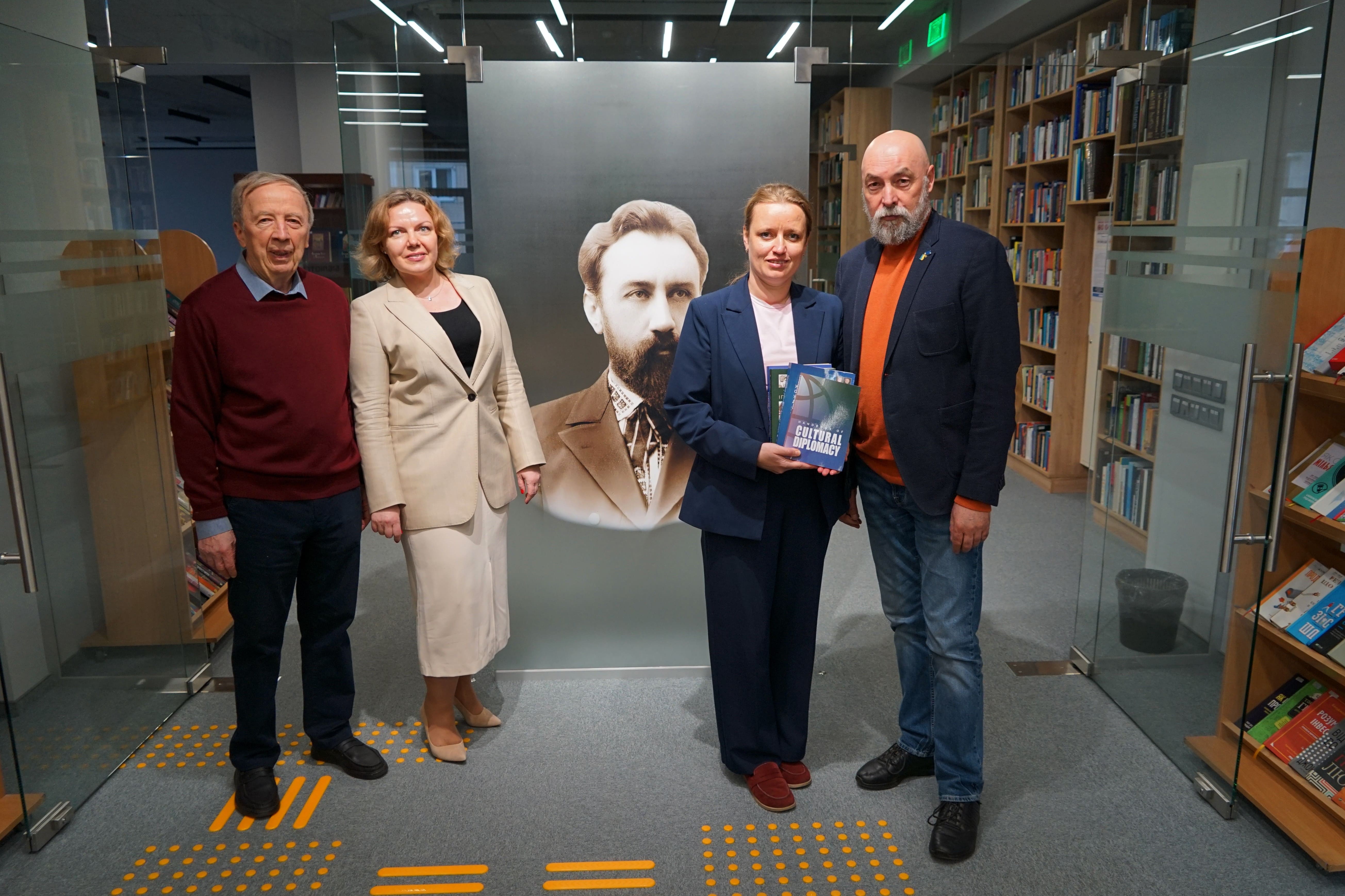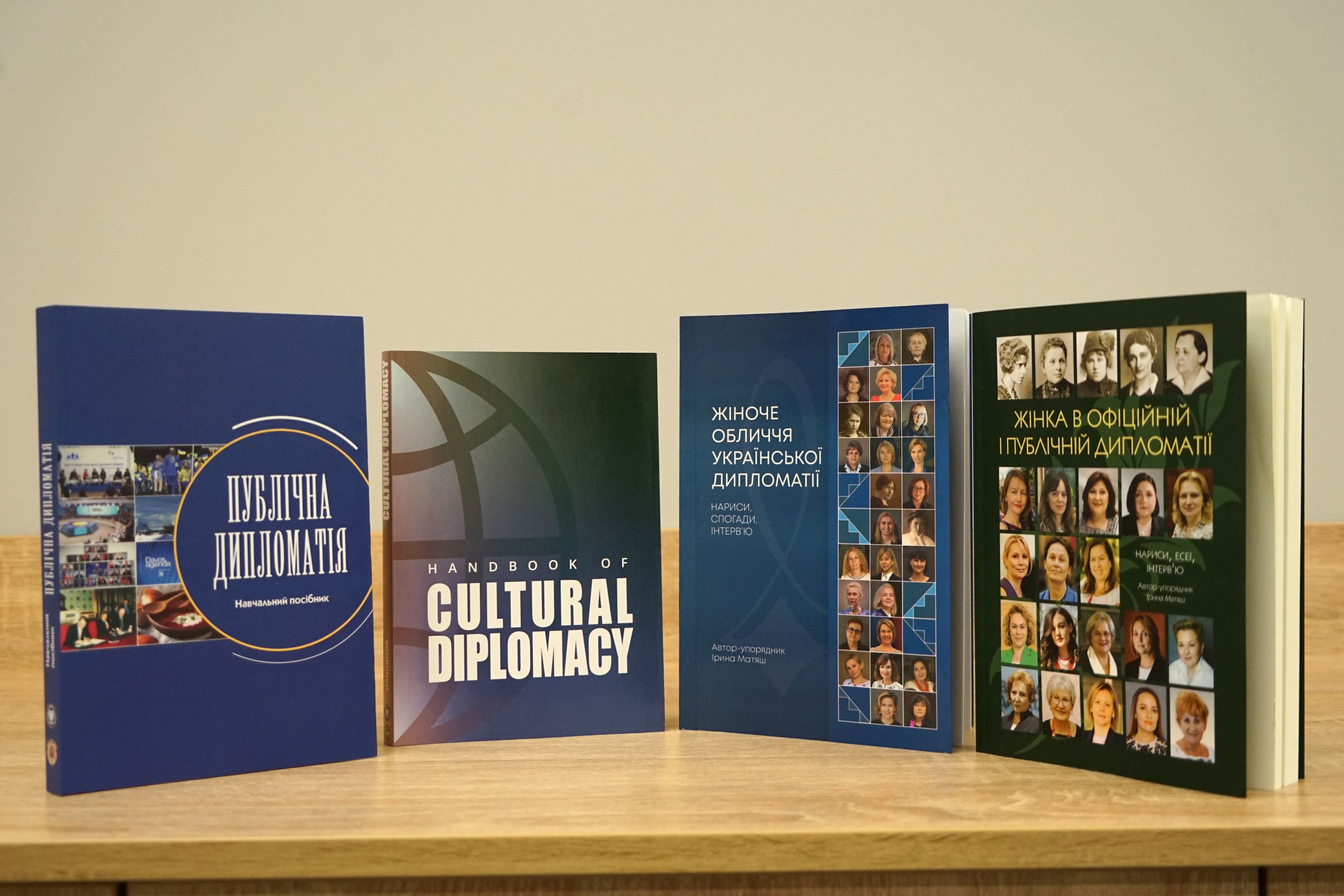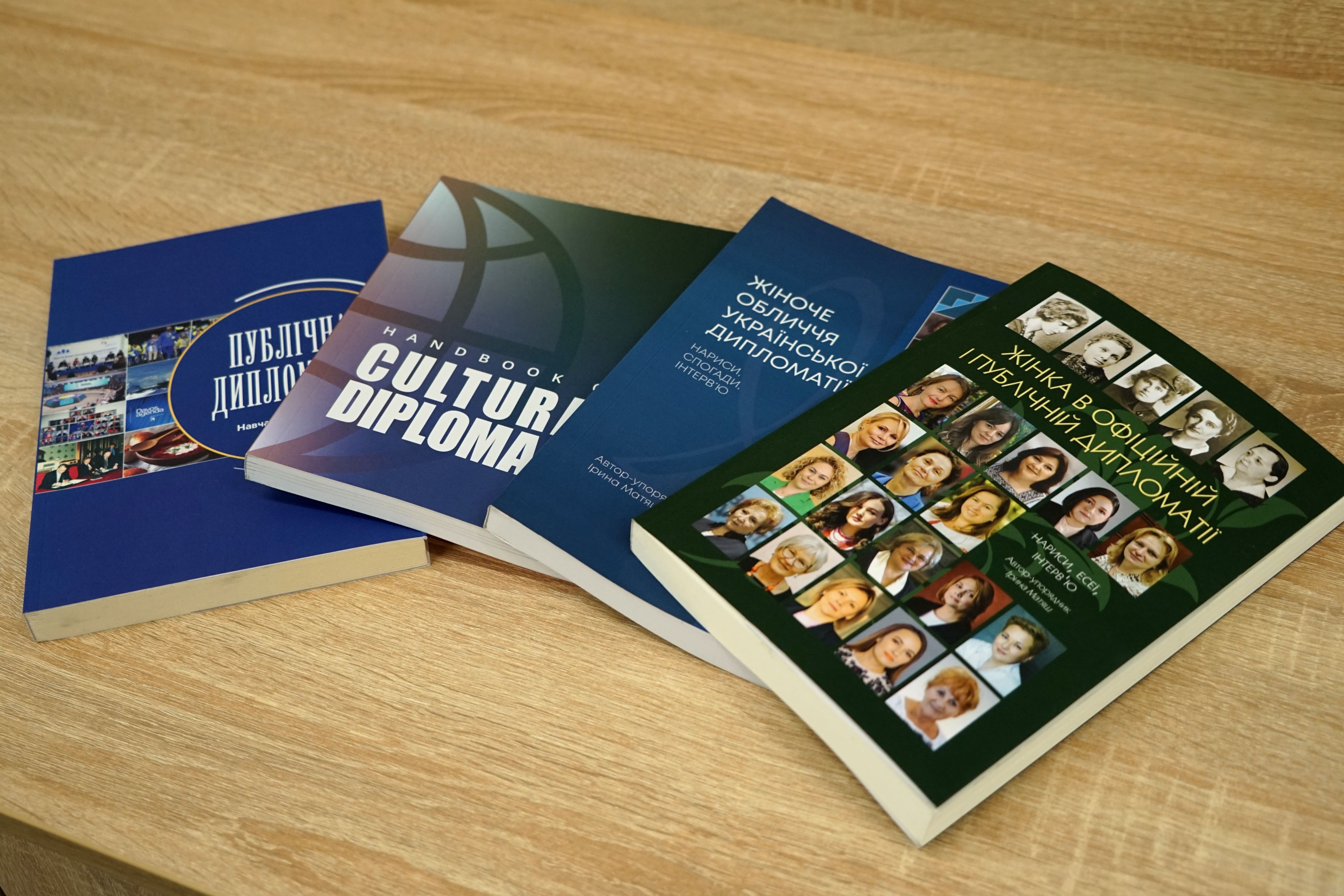 Директорці Бібліотеки Тетяні ОПРИШКО було передано примірники навчального посібника «Публічна дипломатія», англомовного видання «Handbook of Cultural Diplomacy», а також прекрасних видань, які розкривають внесок жінок у розвиток української дипломатії – «Жіноче обличчя української дипломатії. Нариси, спогади, інтерв’ю» та «Жінка в офіційній публічній дипломатії. Нариси, есеї, інтерв’ю».