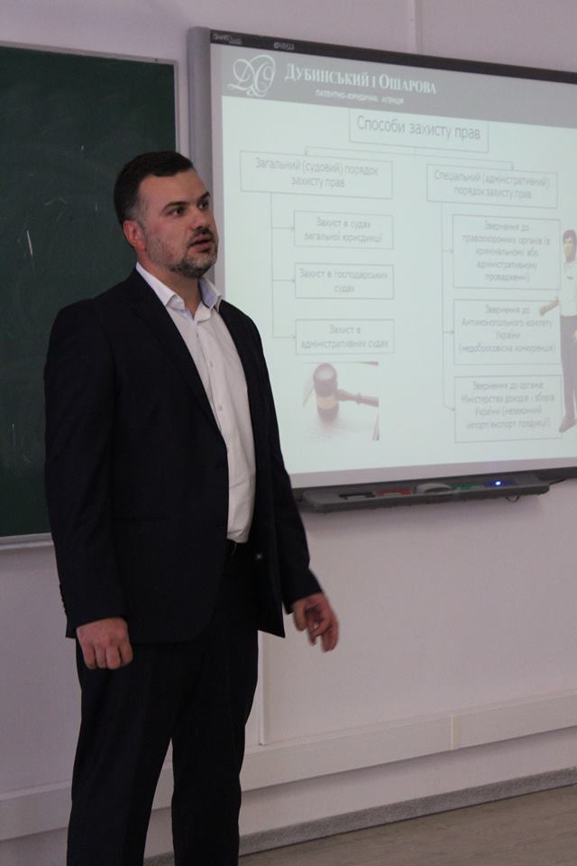 Студенти факультету права та міжнародних відносин на передодні Дня юриста отримали справжній дарунок від кафедри публічного та приватного права. Це була зустріч з партнером патентно-юридичної агенції “Дубинський і Ошарова” Ярославом Огнев’юком.