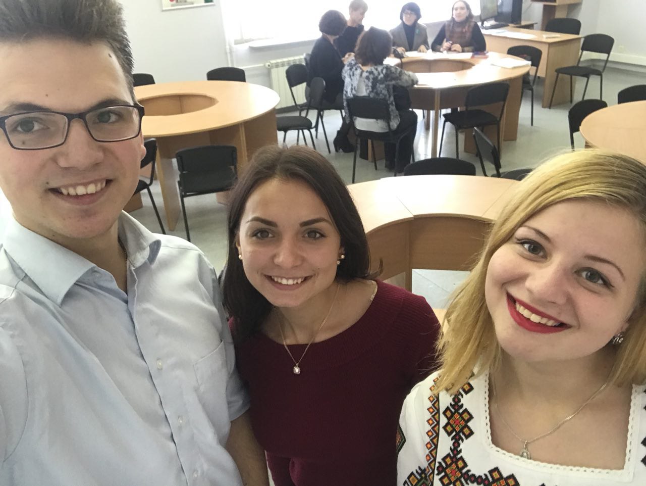 Студенти Факультету права та міжнародних відносин – Дмитро Потапов – ІІ курс спеціальності «Міжнародна інформація», Вероніка Сірко – ІІ курс спеціальності «Міжнародна інформація», Оксана Шахова – ІІ курс спеціальності «Країнознавство», разом з іншими учасниками конкурсу, випробовували свої сили і знання у 2-х турах: усному (виразне читання сучасної української поезії) і письмовому (виконання тестових завдань з української мови та написання міні-твору).