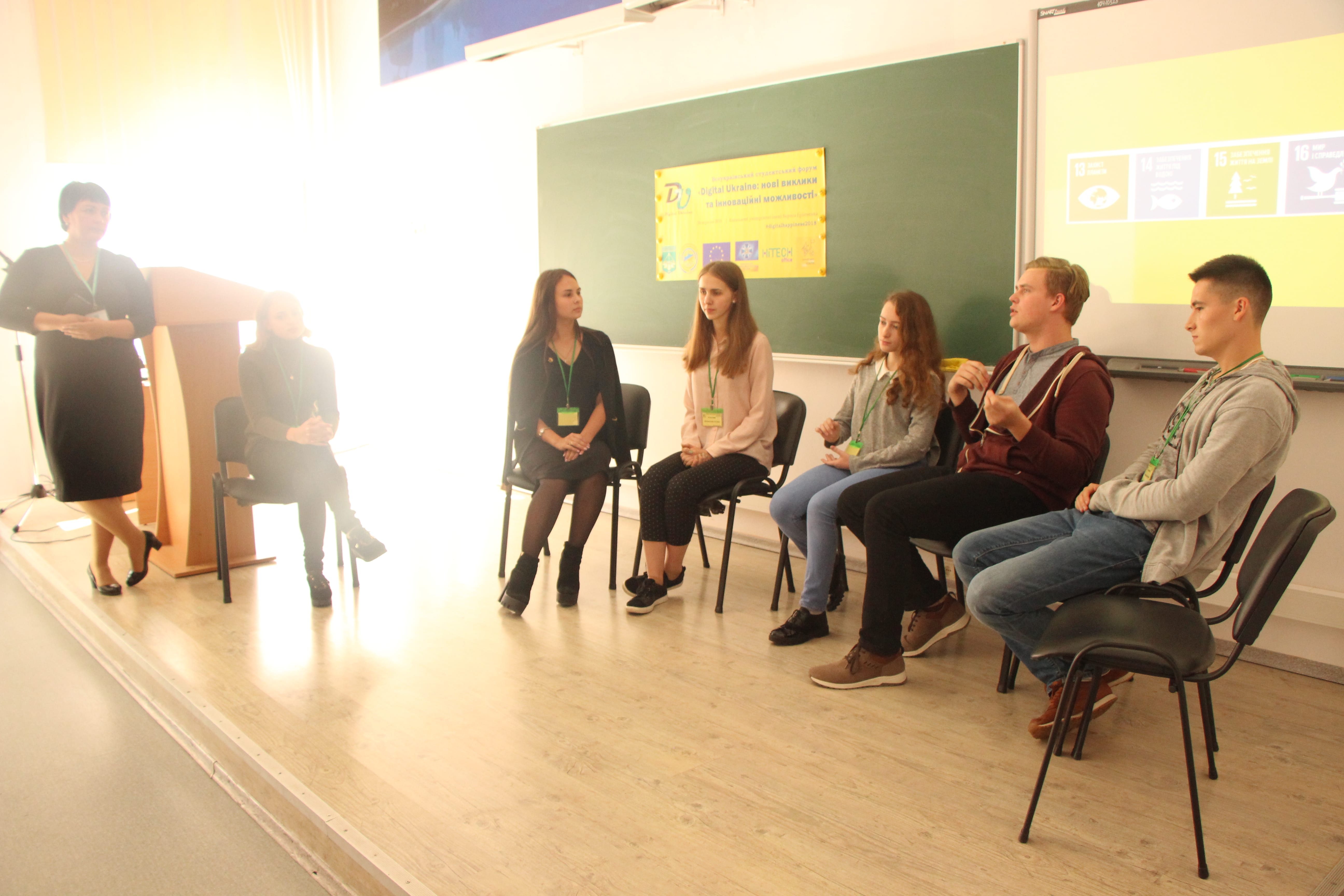 Окрім виступів фахівців діджитал–сфери, учасники Форуму мали змогу висловити свої ідеї та подискутувати з іншими студентами під час групової дискусії у форматі «Fishbowl» на тему: «Цифрові технології допомагають чи перешкоджають досягненню «Цілей сталого розвитку 2016–2030» ? Яким чином? Як допомогти чи запобігти даному ефекту?», яку модерувала Слюсаренко Ірина Юріївна, доцент кафедри міжнародних відносин та міжнародного права. В процесі групової гри у форматі «World Cafe», учасники обговорили інші важливі теми, що стосуються цифрових технологій в сучасному світі, серед яких: інформаційні та кібер війни, цифрові навички та цифровий інтелект, цифровий захист журналістів та дрон–журналістика, інформаційне право та інформаційне суспільство, вплив цифрових технологій в процесі глобалізації.