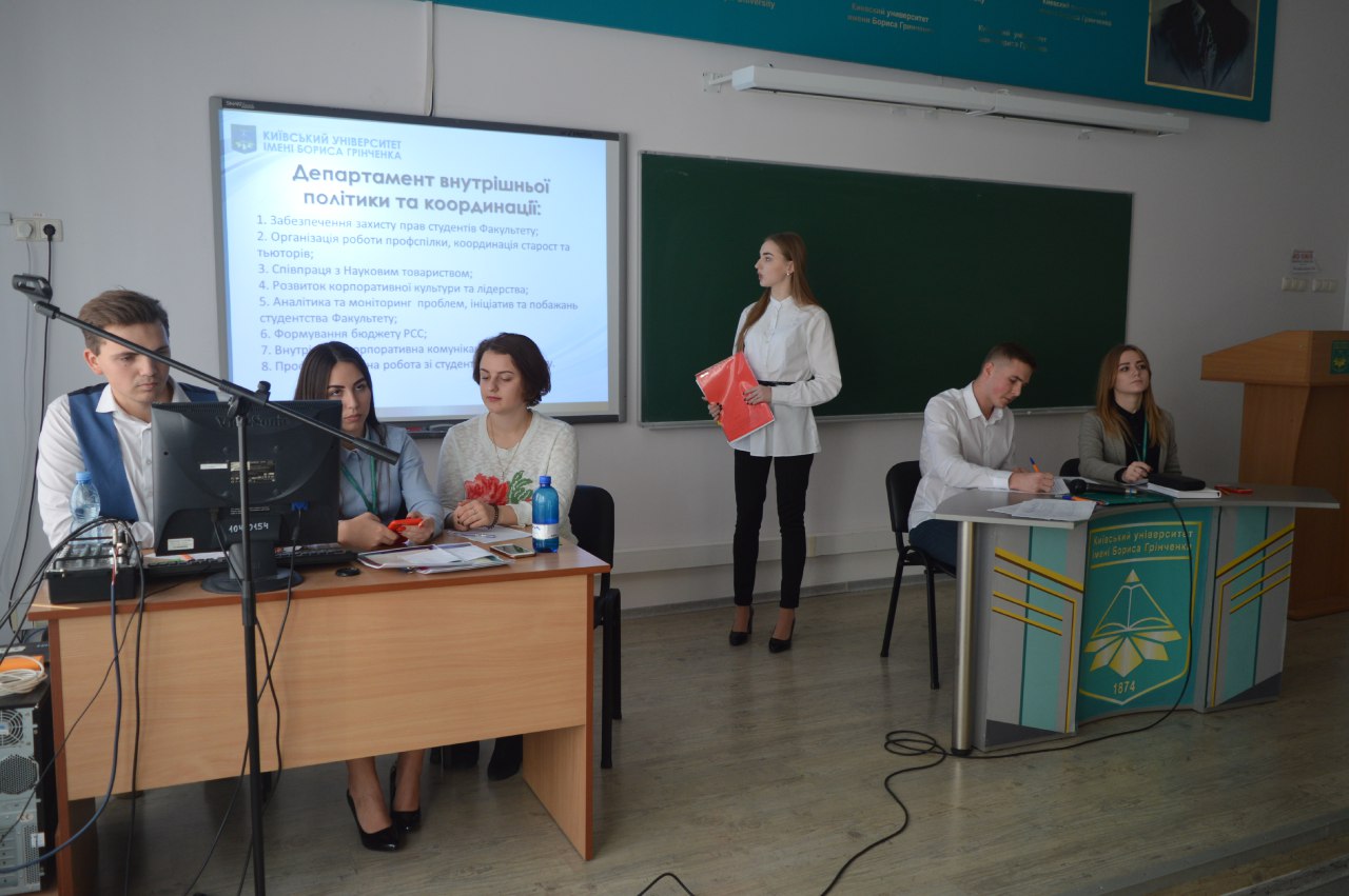 7 жовтня 2018 року відбувся звіт Голови Ради студентського самоврядування за 2017-2018 н. р. На конференції студентів Факультету було зареєстровано 101 особа, а також були присутні запрошені гості та представники інших структурних Університету. За результатами прямого таємного голосування звіт було визнано задовільним 99 голосами. Голову Ради студентського самоврядування Івашкевич Ангеліну було нагороджено Почесною грамотою Студентського парламенту Університету.