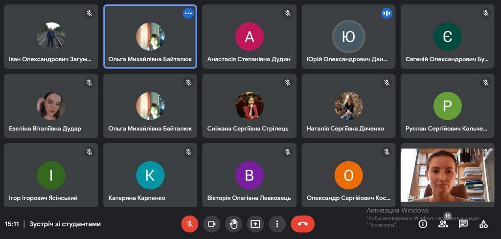 7 вересня 2021 року відбулася організаційна зустріч зі студентами 2 та 3 курсу денної та заочної форми навчання, які вступила на навчання на освітню програму «Право» у 2021 році.вересня 2021 року відбулася організаційна зустріч зі студентами 2 та 3 курсу денної та заочної форми навчання, які вступила на навчання на освітню програму «Право» у 2021 році.Модератор зустрічі, старший викладач кафедри Байталюк О.М. та гарант ОП «Право» першого (бакалаврського) рівня к.ю.н., доцент кафедри Сергієнко Н.А. розповіли студентам про особливості організації освітнього процесу в Університеті та на факультеті, особливості дистанційного навчання за допомогою платформи Moodle та Google Meet.