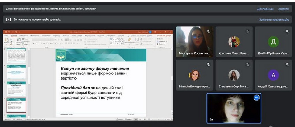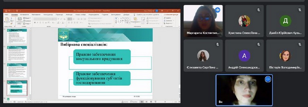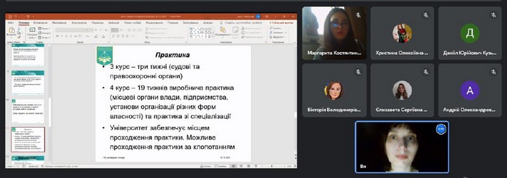 2 грудня 2022 на платформі Google Meet відбулася профорієнтаційна зустріч зі студентами 4 курсу спеціальності «Право» Фахового коледжу «Універсум» щодо продовження навчання на Факультет права та міжнародних відносин.