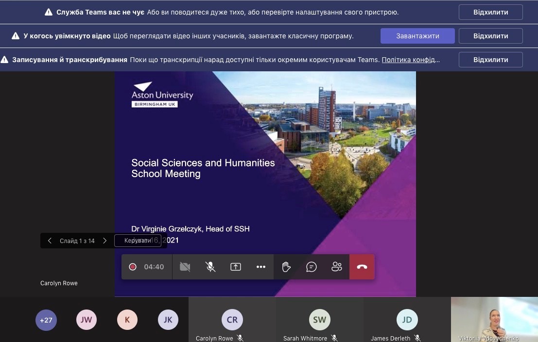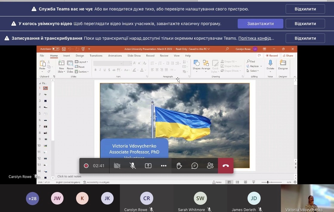 8 березня 2023 року студенти спеціальності «Право» другого (магістерського) рівня прослухали гостьову лекцію англійською мовою на тему: «Війна проти України рік потому: перспективи та виклики», яку провела Вікторія Вдовиченко, що є візитуючою ученoю в Aston University (Бірмінгем, Англія), де займається науково-дослідницькою діяльністю в галузі зовнішньої по літики та міжнародної безпеки.
