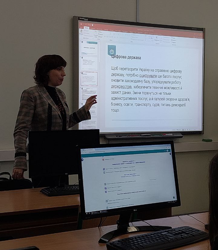 06 жовтня 2024 року відбулося практичне заняття з Інформаційно-комунікативних технологій для студентів 1 курсу спеціальності «Право» (група Прб-1-24.04д) на тему: «Діджиталізація в правовій сфері» під час якого студенти ознайомилися з особливостями запровадження цифровізації в життя громадян України та можливостями які надає діджиталізація для оформлення документів, отримання довідок, реєстрації на сайтах органів влади тощо. Практичне заняття провела старший викладач кафедри приватного права Ольга Михайлівна Байталюк.