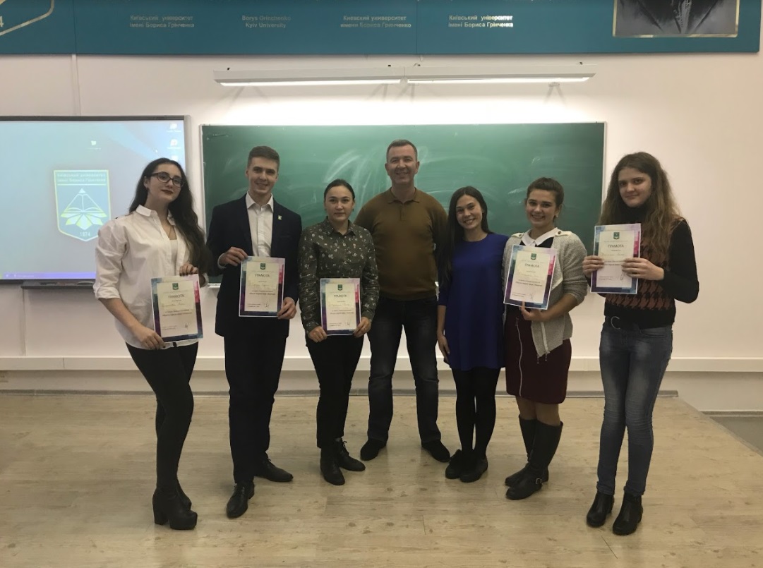Переможці конкурсу: 1 місце – Бідюкова Анна (студентка 2 курсу, група ПРБ-1-16-Од., тема презентації: «Аборт: реалізація репродуктивного права чи порушення права на життя?»), 2 місце – Мотовіліна Яна (студентка 1 курсу, група ПРБ-2-17-4Од, тема презентації: «Методи юридичної психології») та 3 місце – Вітюк Анна (студентка 2 курсу, група ПРБ-1-16-Од., тема презентації: «Конституційно-правове регулювання основних прав і свобод людини та громадянина»). Консультативну допомогу у підготовці студентів до виступів надавали їх наукові керівники – співробітники кафедри публічного та приватного права Факультету права та міжнародних відносини (Войцеховська І. М., Обловацька Н. О.).
