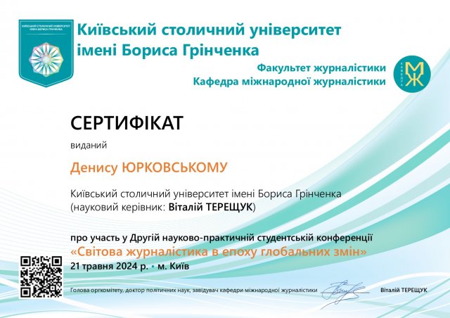 Матеріали конференцій, круглих столів та інших наукових заходів, публікації