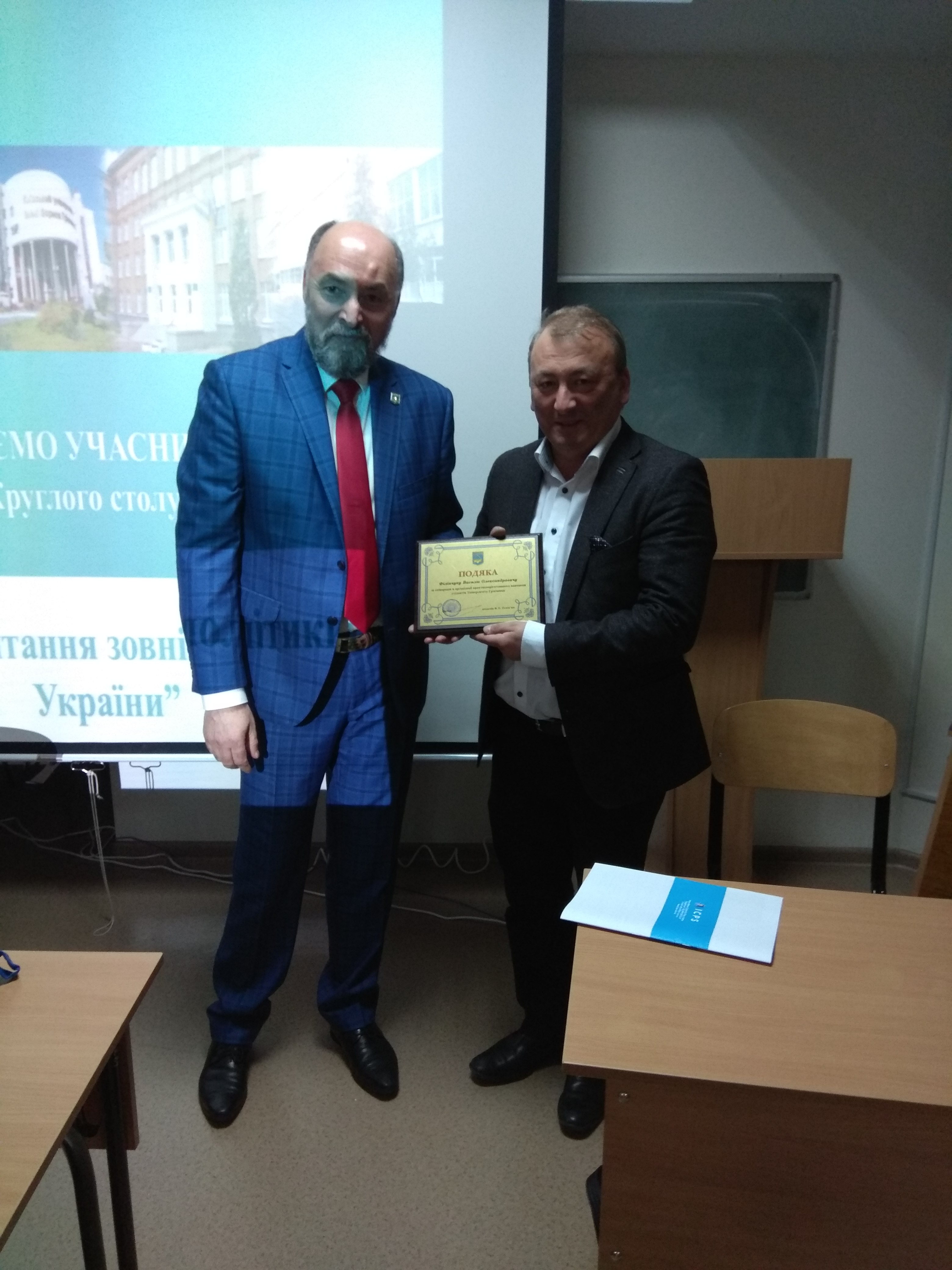 20 грудня 2018 року напередодні Дня працівників дипломатичної служби України кафедрою міжнародних відносин та міжнародного права відбулася гостьова лекція на тему «Актуальні питання зовнішньої політики України». Лекцію було організовано для студентів магістратури та 2-го курсу бакалаврату спеціальності «Міжнародні відносини, суспільні комунікації, регіональні студії». З вітальним словом виступив завідувач кафедри міжнародних відносин та міжнародного права Ігор Володимирович Жалоба. Запрошений лектор – Василь Філіпчук, головний радник Міжнародного Центру перспективних досліджень, Надзвичайний і Повноважний Посланник другого класу. Лекцію було присвячено окресленню основних підсумків 2018 року для зовнішньої політики України та прогнозів на 2019 рік. Разом зі студентами гостьову лекцію прослухали та взяли участь у дискусії викладачі кафедри професор О.Г. Цвєтков О.Г., доценти І.В. Братко, Г.М. Мельник, І.Ю. Слюсаренко, Л.О. Тимченко та старший викладач кафедри М.М. Лісовська.
