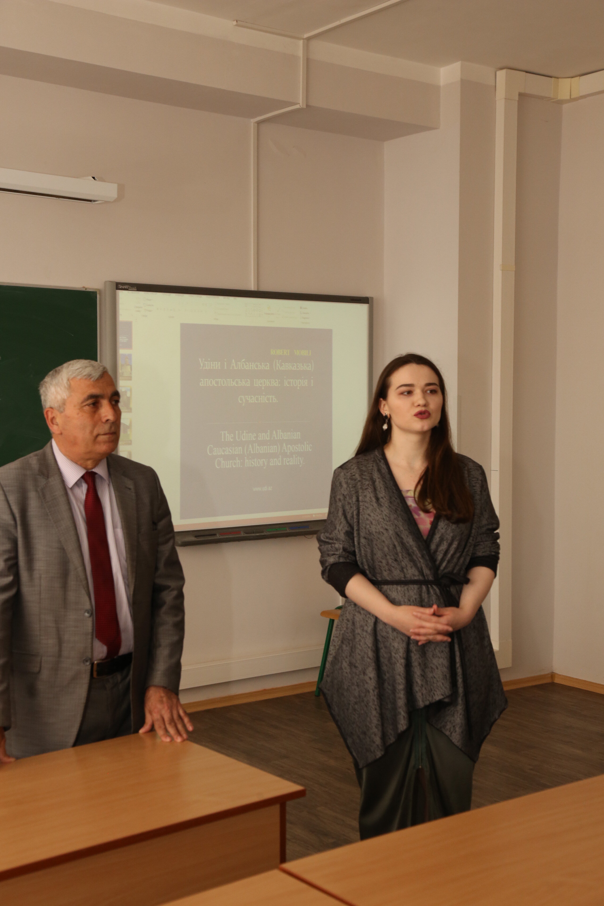 14 травня на Факультеті права та міжнародних відносин відбулася зустріч з головою Албано-Удінської християнської громади Азербайджану, головою Біблійної громади Азербайджану, старшим науковим співробітником Бакинського державного університету Робертом Мобілі і заступником голови Албано-Удінської християнської громади Азербайджану Рафіком Данакарі.