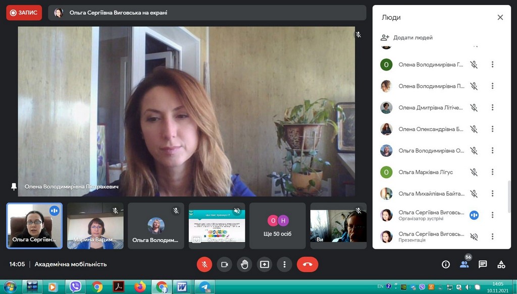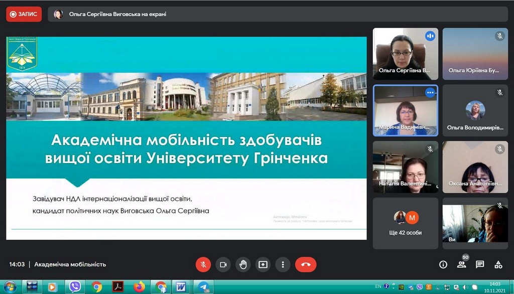 10 листопада 2021 року, в рамках інтернаціоналізації вищої освіти у Київському університеті імені Бориса Грінченка,, відбулася інформаційна он-лайн зустріч для кураторів та зацікавлених викладачів щодо можливостей міжнародної академічної мобільності. Зустріч була ініційована Ольгою Сергіївною Виговською, завідувачкою Науково-дослідної лабораторії інтернаціоналізації вищої освіти, кандидатом політичних наук, доцентом кафедри міжнародних відносин та міжнародного права.