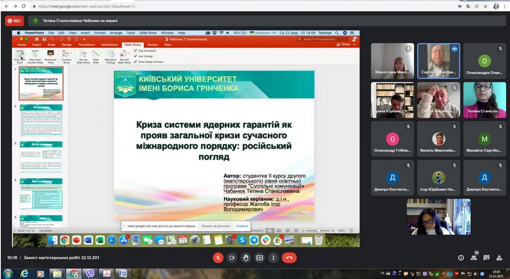 У своїх кваліфікаційних роботах студенти дослідили такі непрості проблеми як інформаційна діяльність НАТО на пострадянському просторі, культура миру та ненасилля в сучасному кінематографі, вплив іміджу держави на процеси міжнародного співробітництва, криза системи ядерних гарантій як прояв кризи сучасної системи світового порядку через призму російського погляду, роль гендерного чинника у міжкультурній комунікації.