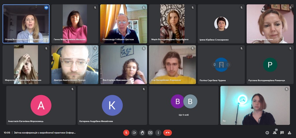 Студенти прозвітували про форми роботи та завдання, які вони виконували під час практики, обговорили компетентності та навички, які отримали при виконанні завдань, розповіли про свої враження від проходження практики.